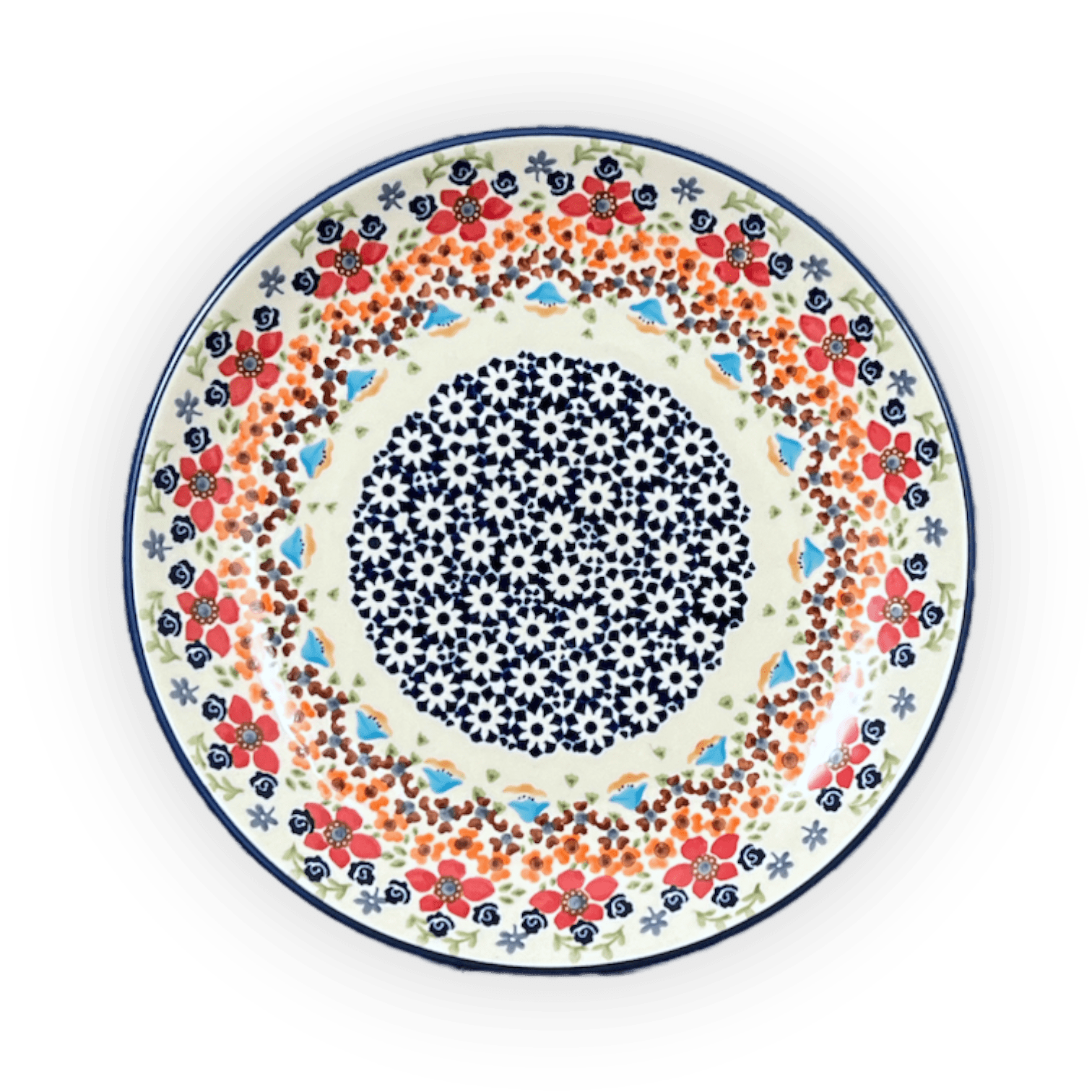 Made in the heart of Boleslawiec, Poland, by skilled artisans, this Polish Pottery is as durable as it is beautiful. Free from harmful substances like lead, nickel, and cadmium, it is safe for use with food and beverages. Furthermore, it can withstand the rigors of the dishwasher, microwave, freezer, and even an oven heated up to 425 degrees. Since 1992, Manufaktura has not only set trends but also garnered international acclaim for their stunning designs and commitment to promoting Polish pottery globally. Whether you're looking to impress your dinner guests or add a splash of color to your daily meals, this Polish Pottery Plate is a perfect choice. Mix and match with other pieces to create a dazzling ensemble that's as unique as it is functional.