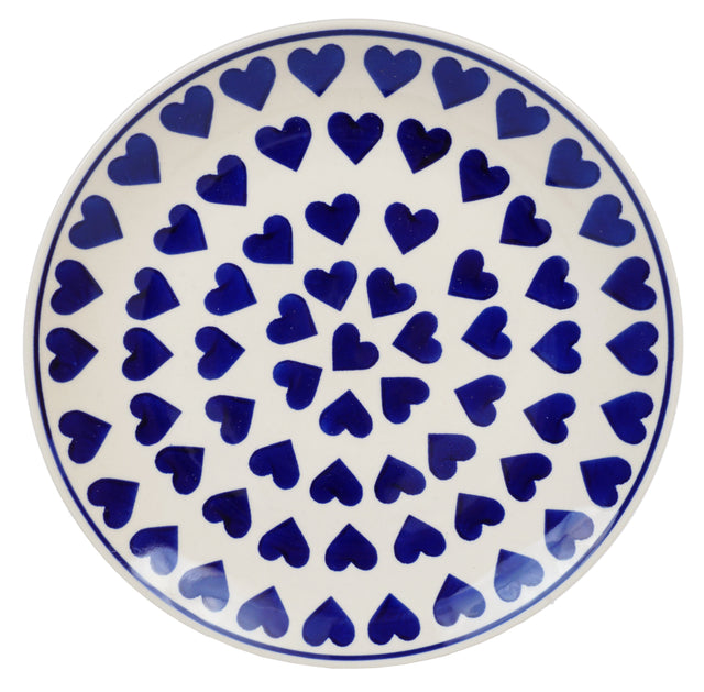 The "Whole Hearted" pattern features a beautiful design incorporating hearts in a predominantly blue color with accents in white. The white background is adorned with bands of blue hearts extending from the center, creating a lovely and charming look. This pattern is considered to be of Traditional level of artistry, making it a timeless and classic choice for any home.