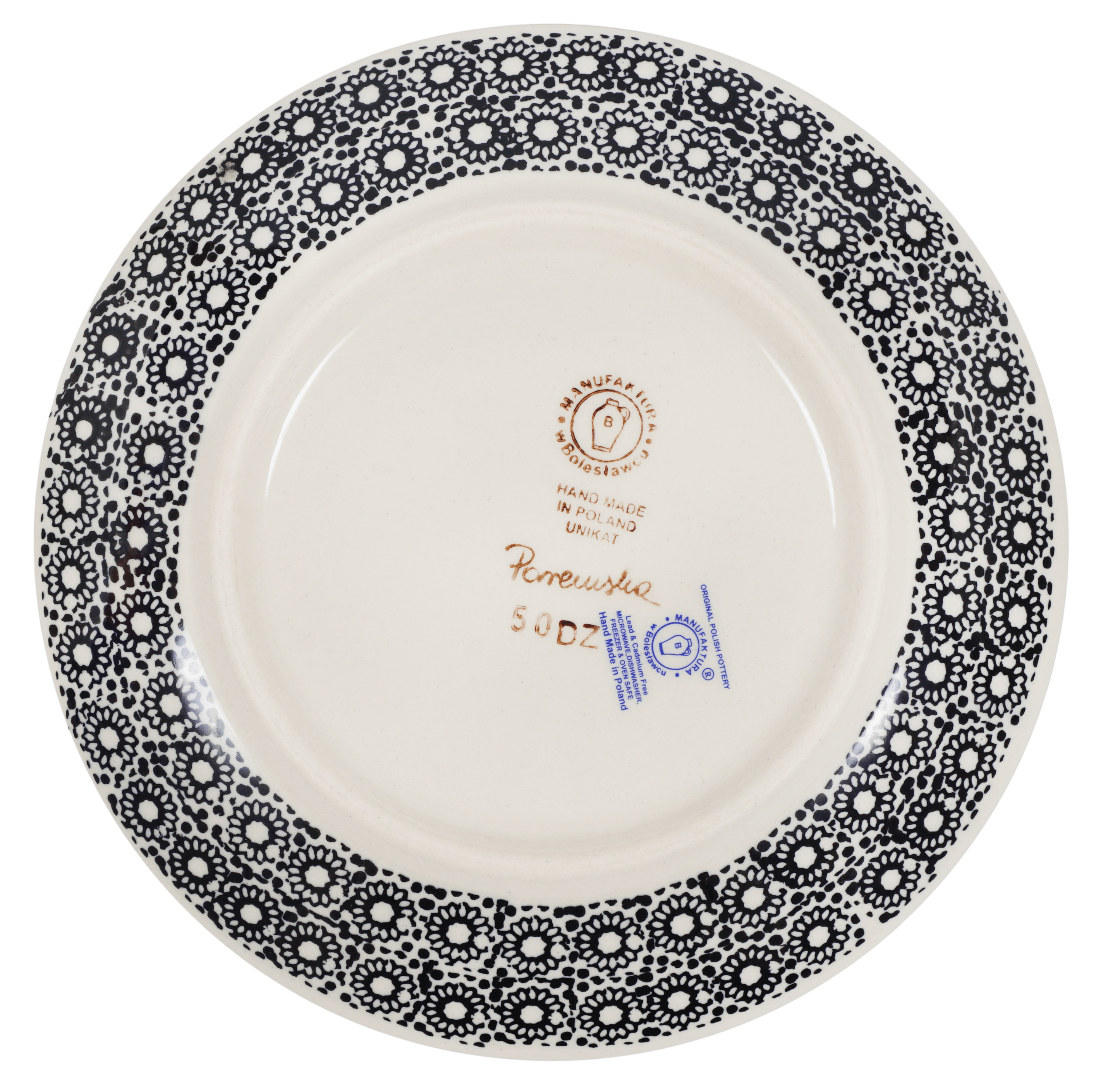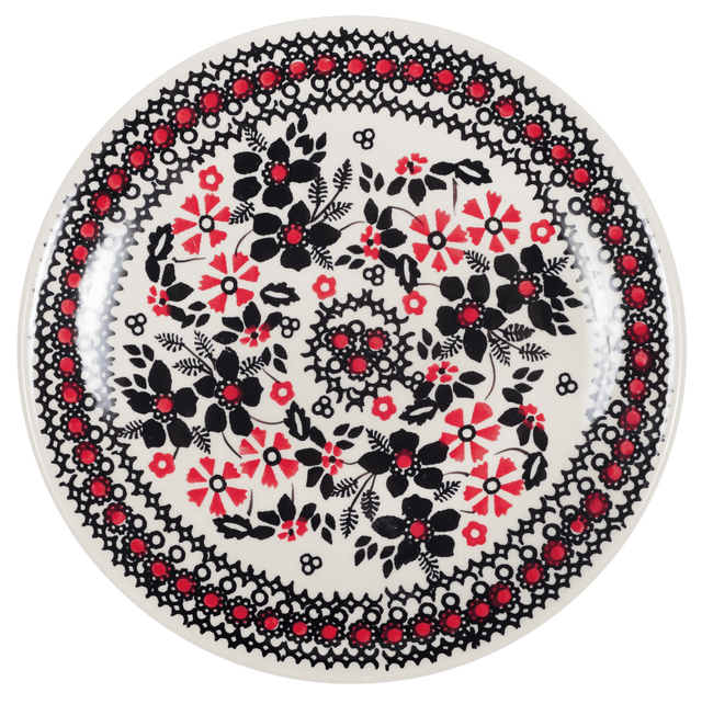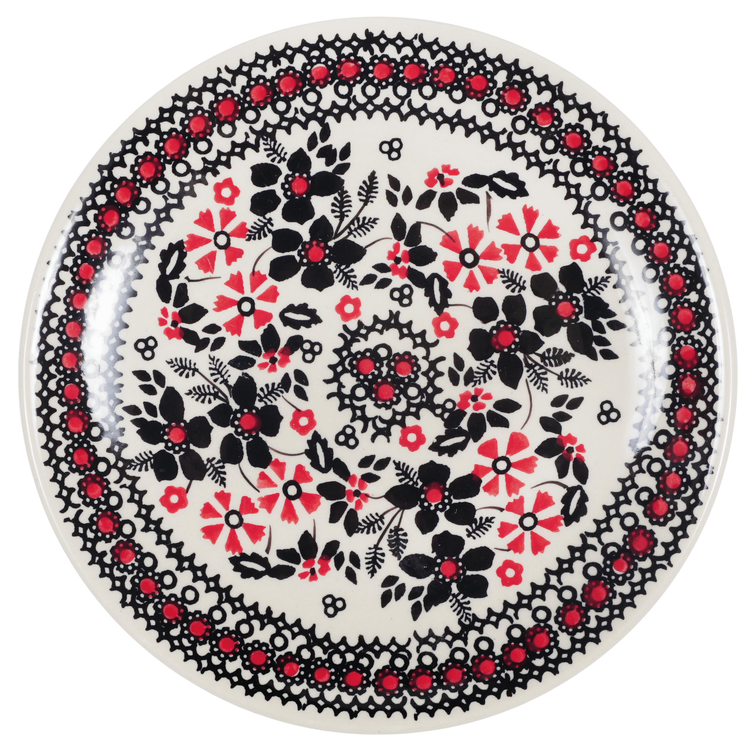 Imagine a table adorned with the exquisite charm of the Polish Pottery 7.25" Dessert Plate, crafted by the prestigious Manufaktura in the captivating "Duet in Black & Red" pattern. This isn't just any plate; it's a portal to a world of artistic mastery and cultural heritage. The striking design features a pristine white background, set alive with a playful dance of small black flowers at its center, encircled by a vibrant chain of red and black blossoms. It's more than just a dish; it's a conversation starter, turning every dessert into a display of artistry and tradition.