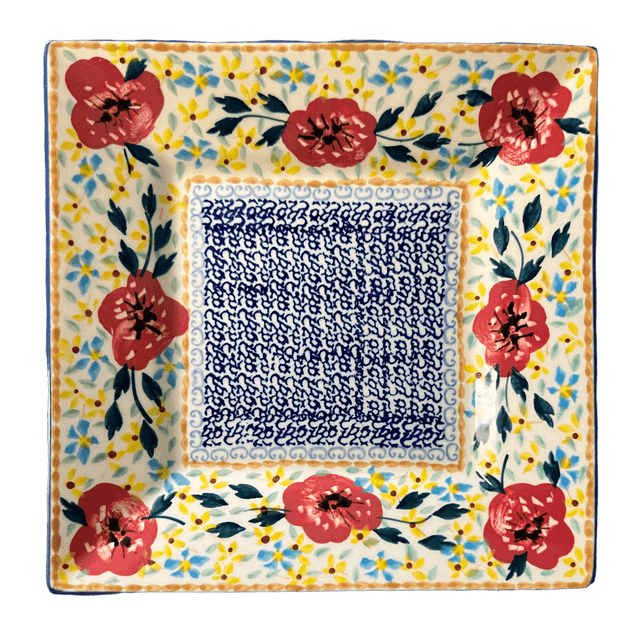 Introducing the Polish Pottery 7" Square Dessert Plates by Manufaktura in the captivating "Brilliant Wreath" pattern (WK78). These fabulous stacking plates are not just your ordinary dessert plates - they are a perfect addition to any occasion. Whether you're serving a delightful small salad, a warm slice of bread, or a heavenly piece of pie, it couldn't look any more enticing than when it's presented on a handmade, heirloom quality square plate.