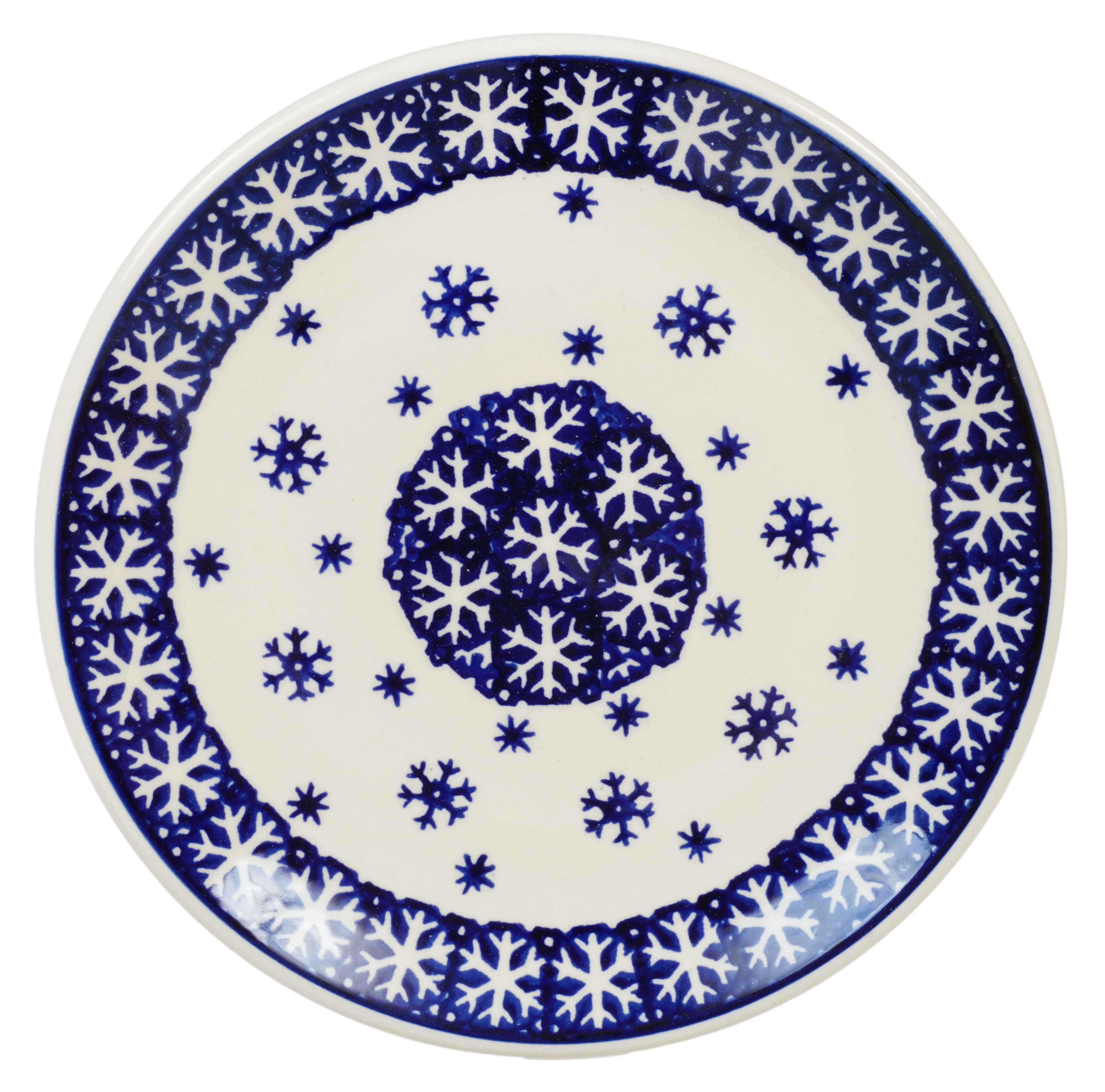 Imagine a table setting that not only captures the eye but also tells a story of artistry and tradition. Enter the enchanting world of Polish Pottery with the Manufaktura 7.25" Dessert Plate, adorned with the captivating "Snow Drift" pattern. This delightful plate features an intricate design of white snowflakes dancing across a serene blue backdrop, reminiscent of a peaceful, snowy Christmas morning. The outer edge is graced with a sparse sprinkle of blue snowflakes set against a white canvas, creating a charming contrast that's sure to enchant your dinner guests. Crafted in the heart of Boleslawiec, Poland, this plate is a testament to the skill and creativity of its artisans.