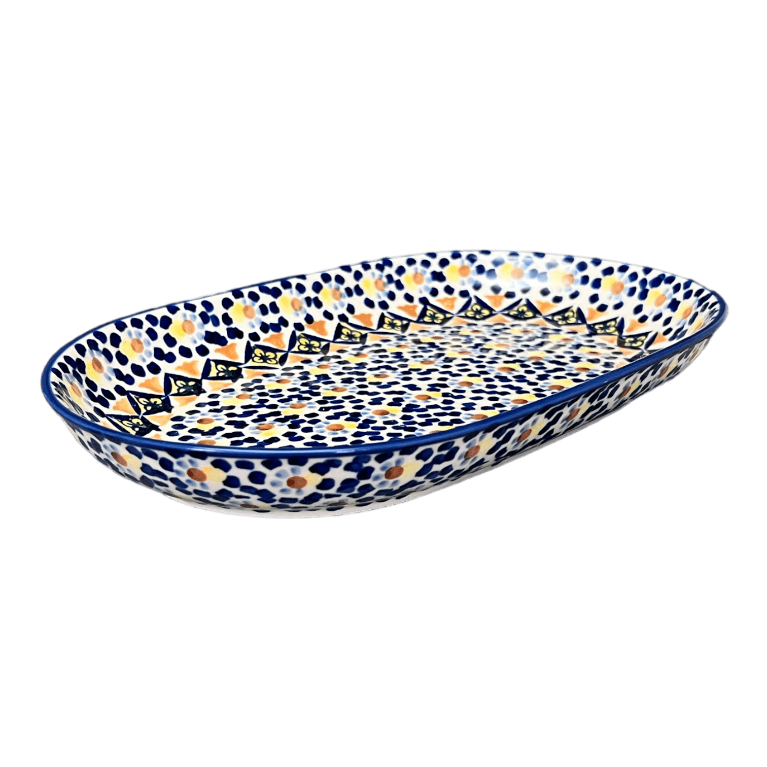 Introducing the Polish Pottery 7" x 11" Oval Roaster by Manufaktura in the captivating "Kaleidoscope" pattern (ASR). This oval roaster is not just any ordinary dish; it is one of Polish Pottery's most versatile and eye-catching creations. With its stunning design and practicality, it is sure to become a beloved addition to your kitchen collection.