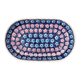 Made and hand-painted in Boleslawiec, Poland by skilled artisans, this oval roaster showcases the "Daisy Circle" pattern. With its mesmerizing design elements incorporating flowers in a predominantly blue color with accents in red and white, it is sure to be a showstopper on your dining table.