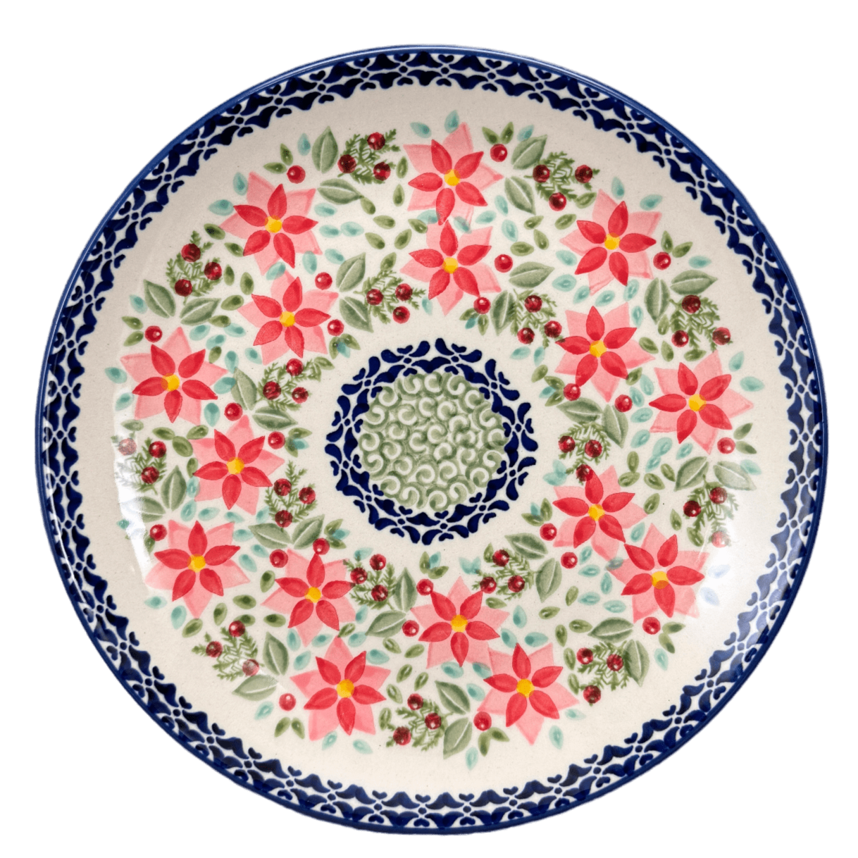 Imagine a canvas where vibrant pinks bloom into exquisite poinsettias, encircled by lush green leaves and vivid red berries, all hand-painted with meticulous care. This isn't just any canvas, but the Manufaktura 8.5" Polish Pottery Salad Plate, a masterpiece that transforms every meal into a celebration. Whether it's a crisp salad, a delightful sandwich, or your favorite dessert, this plate, adorned with the "Pink Poinsettia" pattern, elevates your dining experience. Not just a dish, but a portal to a world of beauty, right at your table.