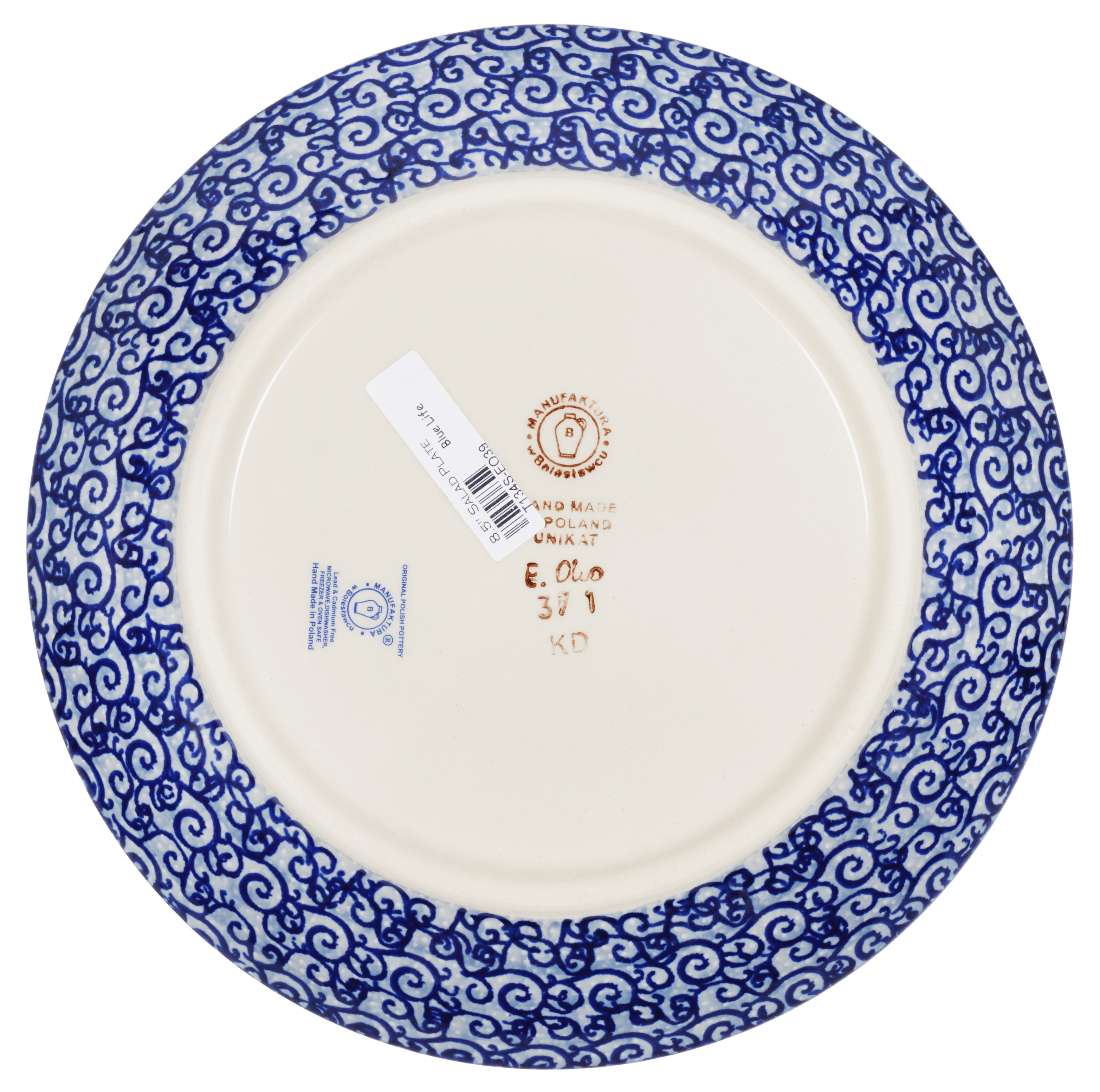 Introducing the exquisite Polish Pottery 8.5" Round Salad Plate by Manufaktura, in the captivating "Blue Life" pattern (EO39). This plate is not just perfect for salads, but it also knows how to bring out the best in your sandwiches, cookies, and desserts. Let's face it, everything loves to be served on Polish Pottery!