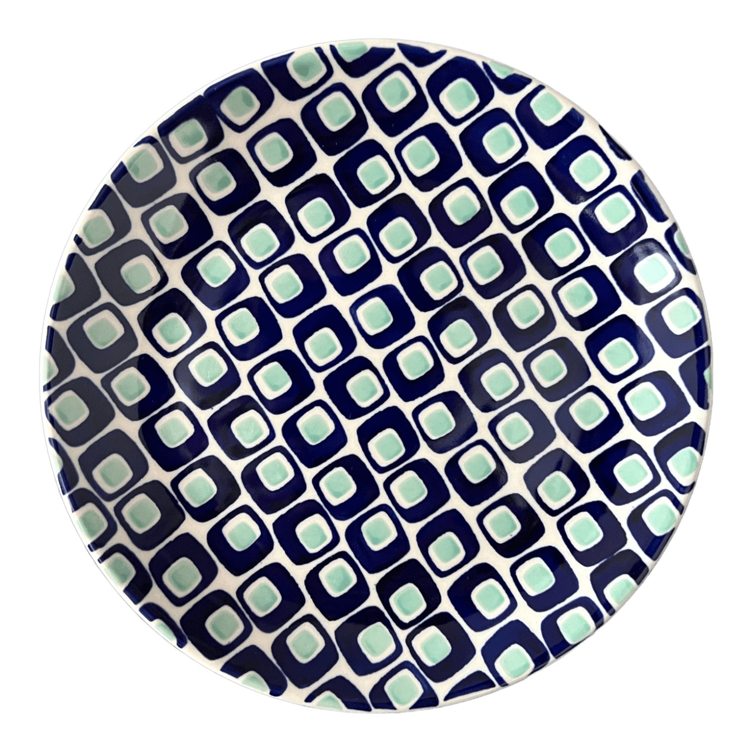 The "Blue Retro" pattern is a true work of art, featuring captivating design elements that incorporate geometric shapes in a predominantly blue color, with accents in green and white. Each plate is meticulously made and hand-painted in Boleslawiec, Poland by skilled artisans who have mastered the art of Polish Pottery. With its vibrant colors and intricate patterns, this plate is guaranteed to add a touch of elegance to your dining table.
