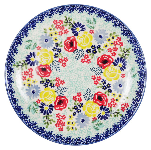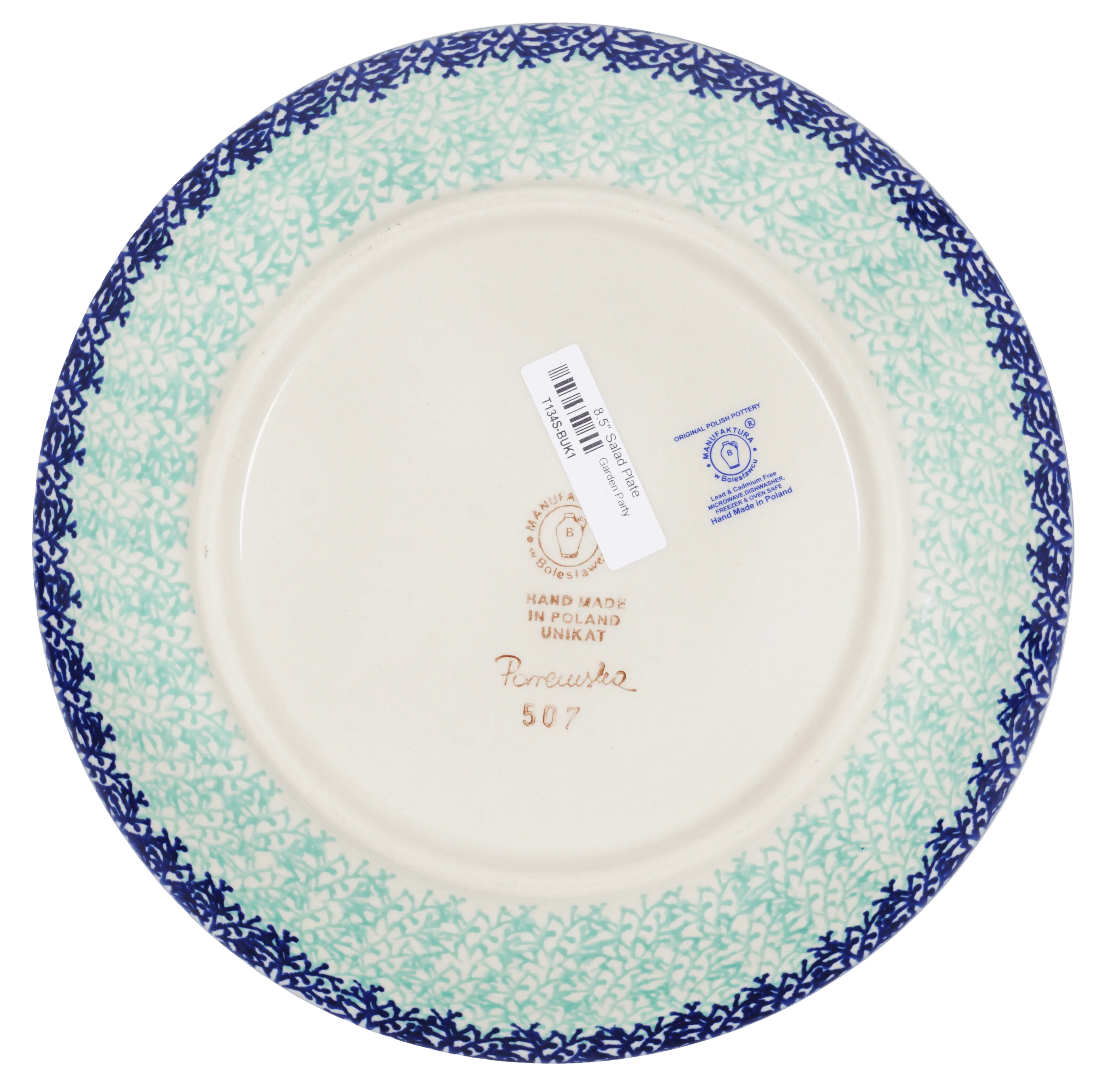 Introducing the Polish Pottery 8.5" Round Salad Plate by Manufaktura in the captivating "Garden Party" pattern (BUK1). This salad plate is not only perfect for your fresh salads, but it also adds a touch of elegance to your sandwiches, cookies, or desserts. Trust us, everything loves to be served on Polish Pottery!