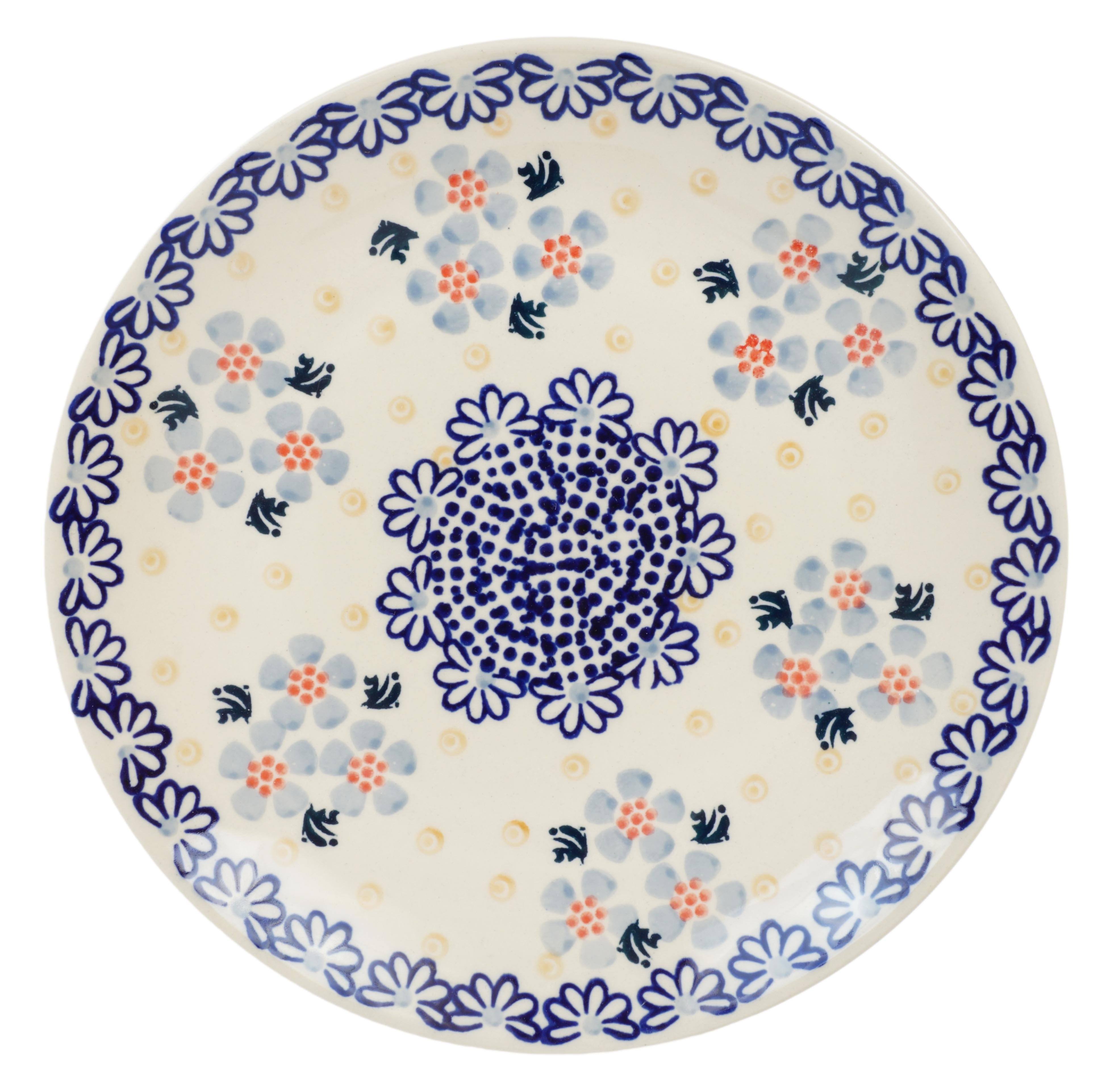 The "Periwinkles & Pinwheels" pattern is a delightful combination of Flowers in a predominantly Light Blue color, with accents in Blue and White, and a pop of Red. The intricate design elements are meticulously hand-painted by skilled artisans in Boleslawiec, Poland. Each plate is a true work of art that brings both functionality and beauty to your dining experience.