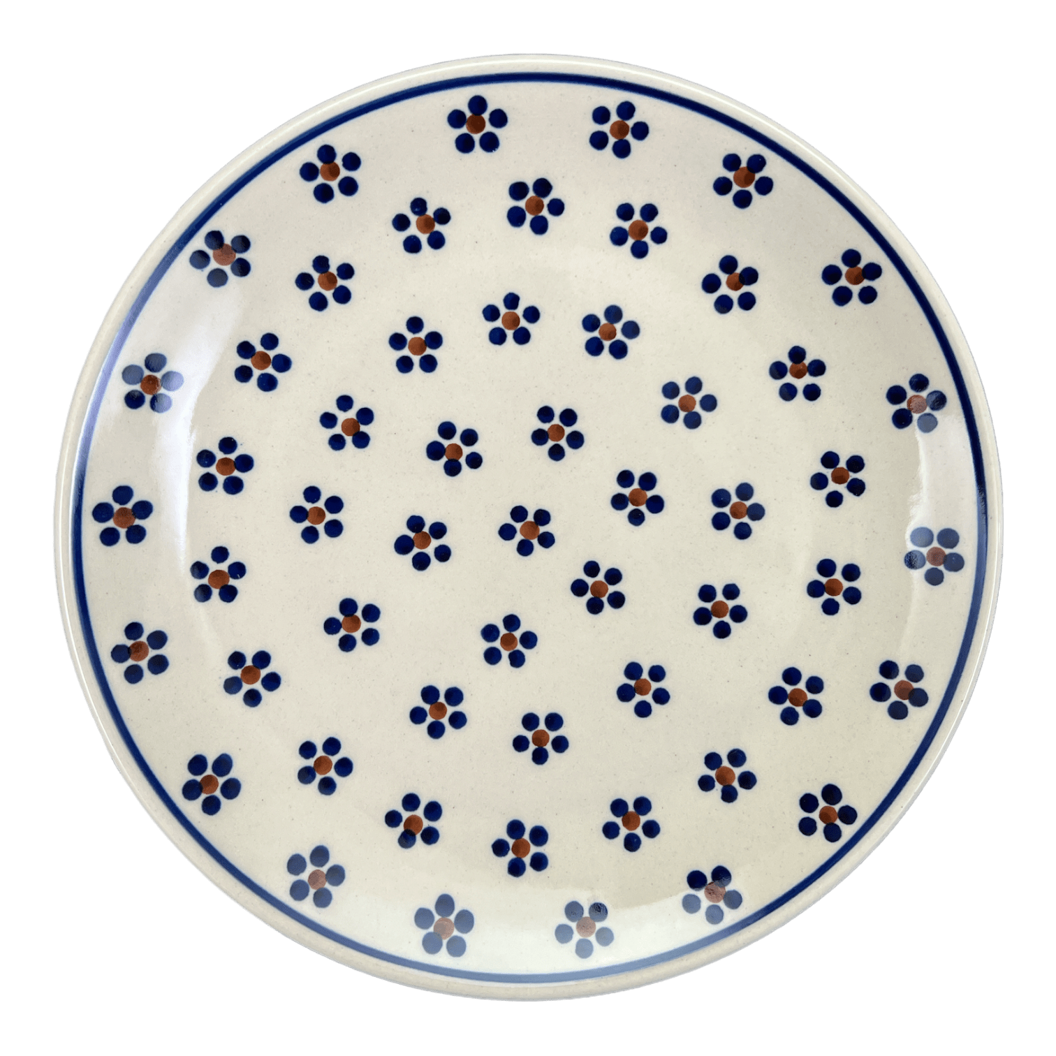 Imagine a touch of elegance and charm on your dining table with the exquisite Polish Pottery Plate from Manufaktura, crafted in the enchanting "Petite Floral" pattern. This delightful 8.5-inch salad plate is not just a vessel for your vibrant salads; it's a versatile canvas waiting to present your sandwiches, cookies, or decadent desserts in style. Each piece, beautifully adorned with a predominantly white background and playful blue daisy-like flowers, transforms every meal into a more joyful occasion. The flowers, characterized by five dark blue dots and a central brown dot, dance across the plate, bordered by a serene blue line that adds a finishing touch to its captivating design.