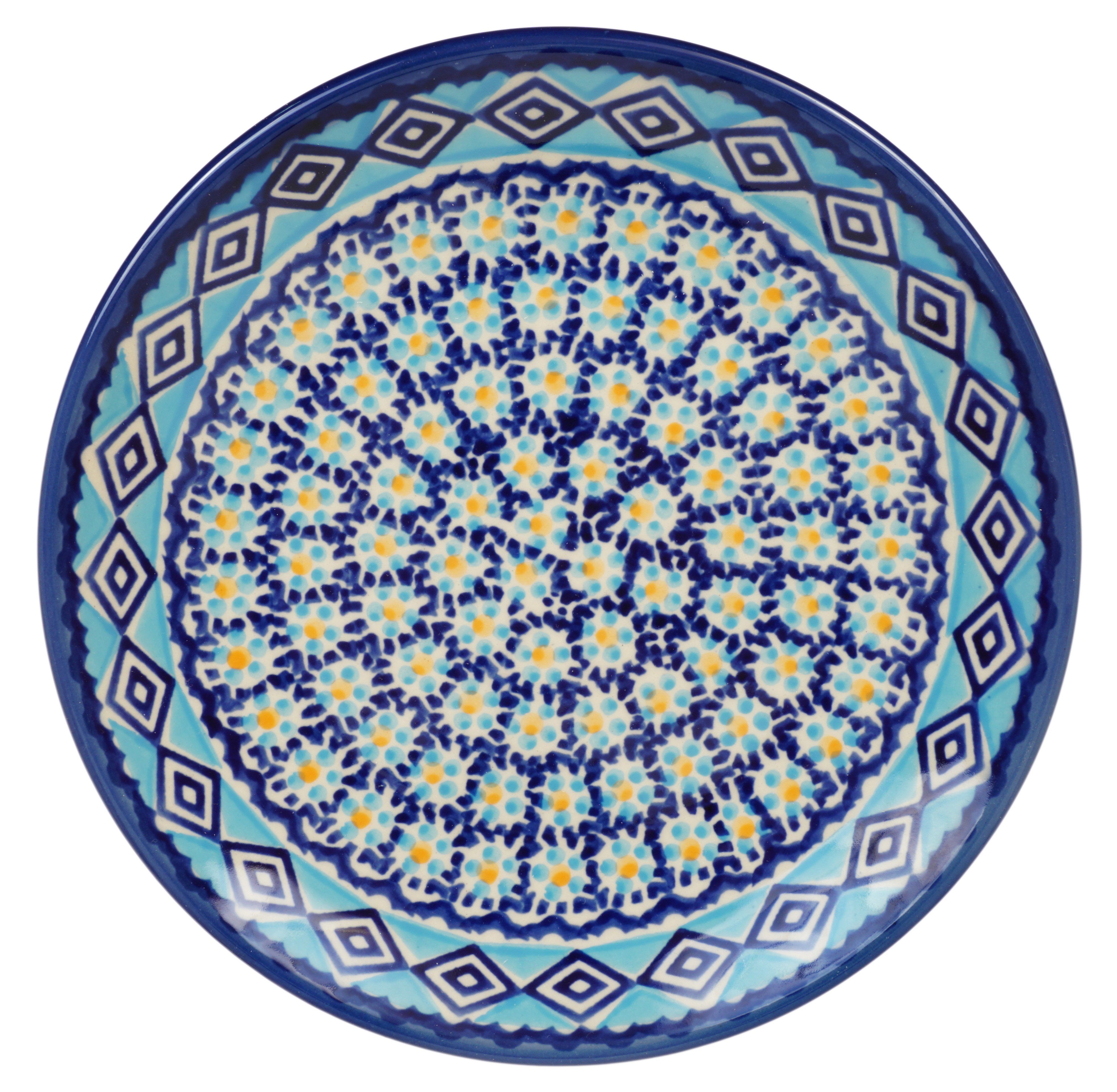 Introducing the Polish Pottery 8.5" Round Salad Plate by Manufaktura in the captivating "Blue Diamond" pattern (DHR). This plate is not just for salads - it's perfect for serving sandwiches, cookies, or even desserts! Trust us, everything loves to be presented on Polish Pottery!