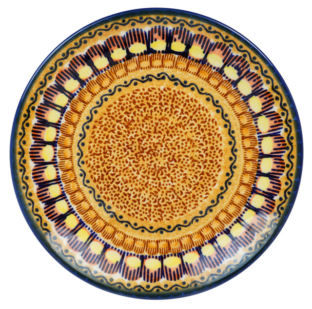 Introducing the Polish Pottery 8.5" Round Salad Plate by Manufaktura in the captivating "Desert Sunrise" pattern (KLJ). This plate is not just your ordinary salad plate; it is a work of art that will bring a touch of elegance to any meal. Whether you're serving up a fresh, crisp salad or indulging in a mouthwatering sandwich, cookie, or dessert, everything loves to be showcased on Polish Pottery!