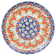 Not just any plate, this piece boasts the esteemed Unikat status, a testament to its unique artistry and high-caliber craftsmanship. Unikat patterns, celebrated for their intricate details and rich color palette, are the brainchildren of the most skilled artisans at Manufaktura. With each plate hand-painted in Boleslawiec, Poland, these designs feature a mesmerizing white background with tiny blue swirls and green tufts, encircled by a dense chain of small red flowers. The "UNIKAT" stamp on the bottom proudly declares the plate's exclusivity, marking it as a collectible item that stands out in any dinnerware collection.