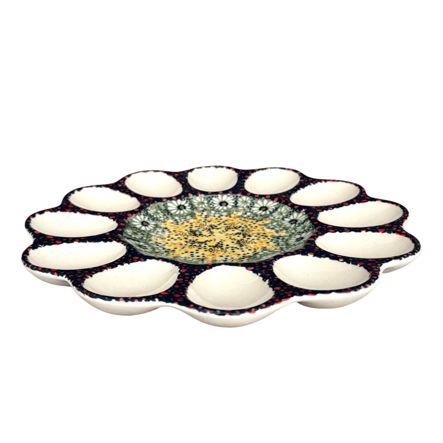Not only is this Polish Pottery plate a visual delight, but it is also built to last. Made from high-quality materials, it is tough, durable, and chip-resistant, ensuring that it can withstand the rigors of daily use. Whether in the dishwasher, microwave, freezer, or oven (up to 425 degrees), this plate performs splendidly. Moreover, it's free of lead, nickel, and cadmium, making it a safe choice for serving food. Since 1992, Manufaktura has set trends and won accolades for their exceptional designs and dedication to promoting Polish pottery globally. By choosing this egg plate, you're not just adding a splash of color to your home but also a piece of Polish heritage and artistry.