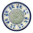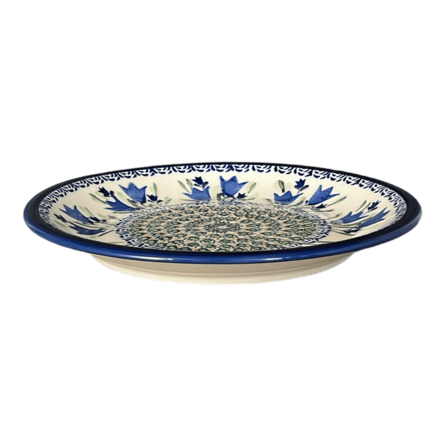 Introducing the Polish Pottery 9.5" Round Plate by Zaklady in the mesmerizing "Blue Tulips" pattern (ART160). These shallow dinner plates are not only perfect for small dinners, but they also bring a touch of elegance to your table. With its stunning design elements incorporating floral motifs in a predominantly blue color with accents in green, this plate is a true work of art.