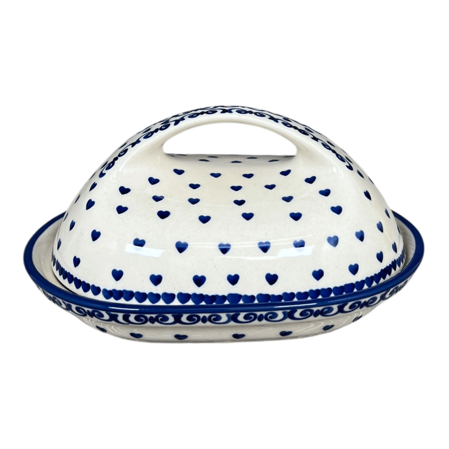 Imagine a splash of vibrant cobalt blue and pure white swirling together in a dance of color and charm right on your dining table! Introducing the Manufaktura Polish Pottery Butter Dish in the delightful "Heartfelt Blue" pattern, measuring a perfect 5" x 7". Crafted in the heart of Boleslawiec, Poland, this butter dish brings not just a snug home for your butter, but also an artistic statement to your kitchen decor. Each piece is meticulously hand-painted by skilled artisans using the traditional "punching" technique, a testament to the centuries-old craft of Polish pottery.