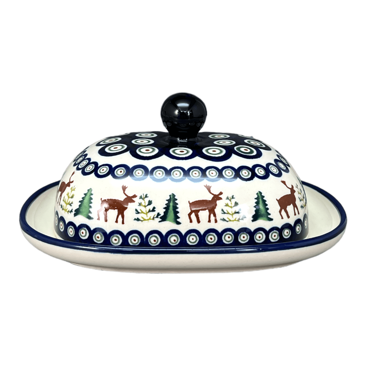 Butter Dish, Large, 6" x 8" in "Evergreen Moose" by Zaklady | Y1394-A992A is backordered and will ship as soon as it is back in stock.