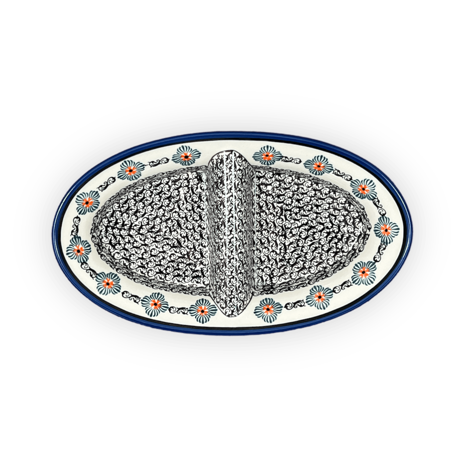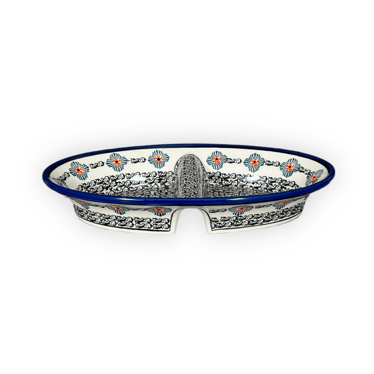 Dual Dish, 11.75" x 7" in "Mesa Verde Midnight" by Zaklady | Y1280A-A1159A is backordered and will ship as soon as it is back in stock.