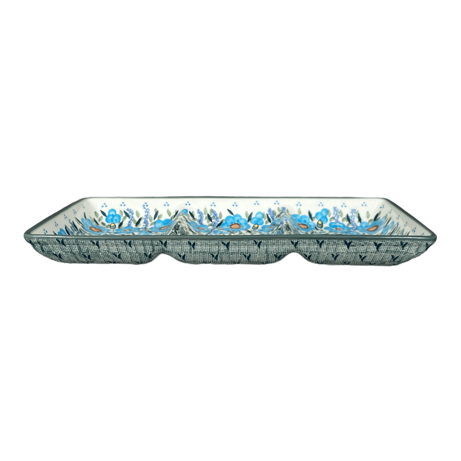 Dish, Divided, 3 Section, 14" x 6.5" in "Baby Blue Blossoms - Solid Rim" by Manufaktura | P155S-JS49A is backordered and will ship as soon as it is back in stock.
