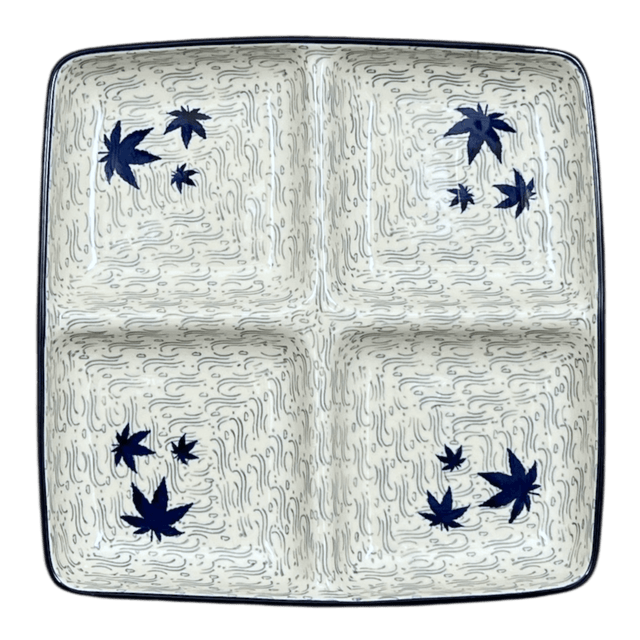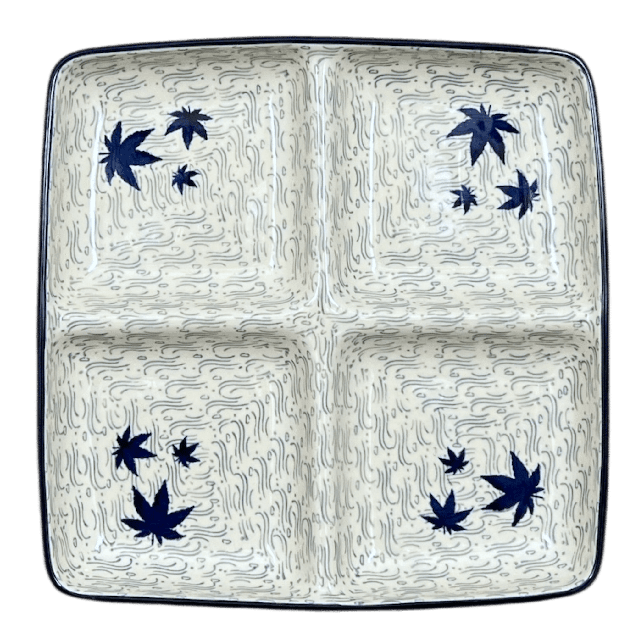 Divided Square Dish, 9.75" in "Blue Sweetgum" by Ceramika Artystyczna | AB40-2545X