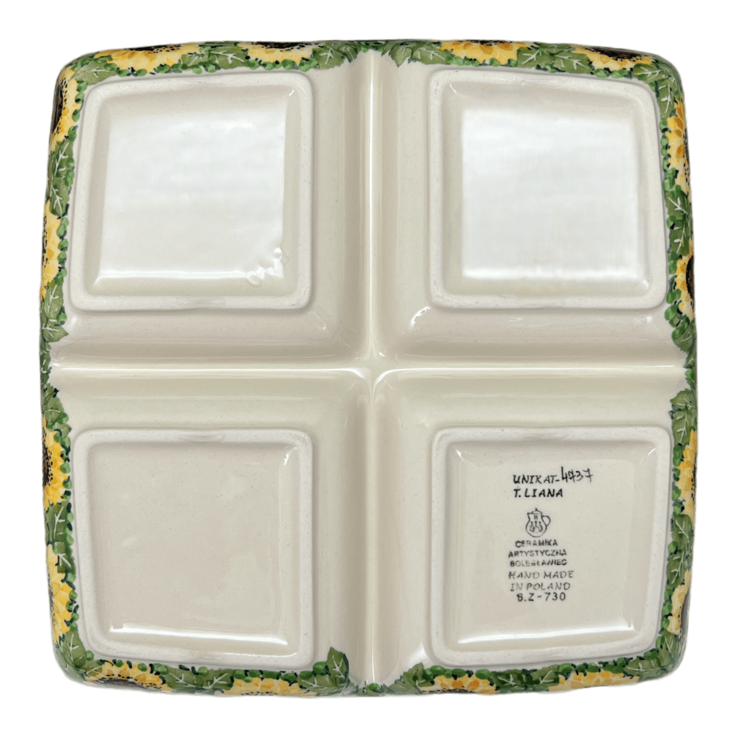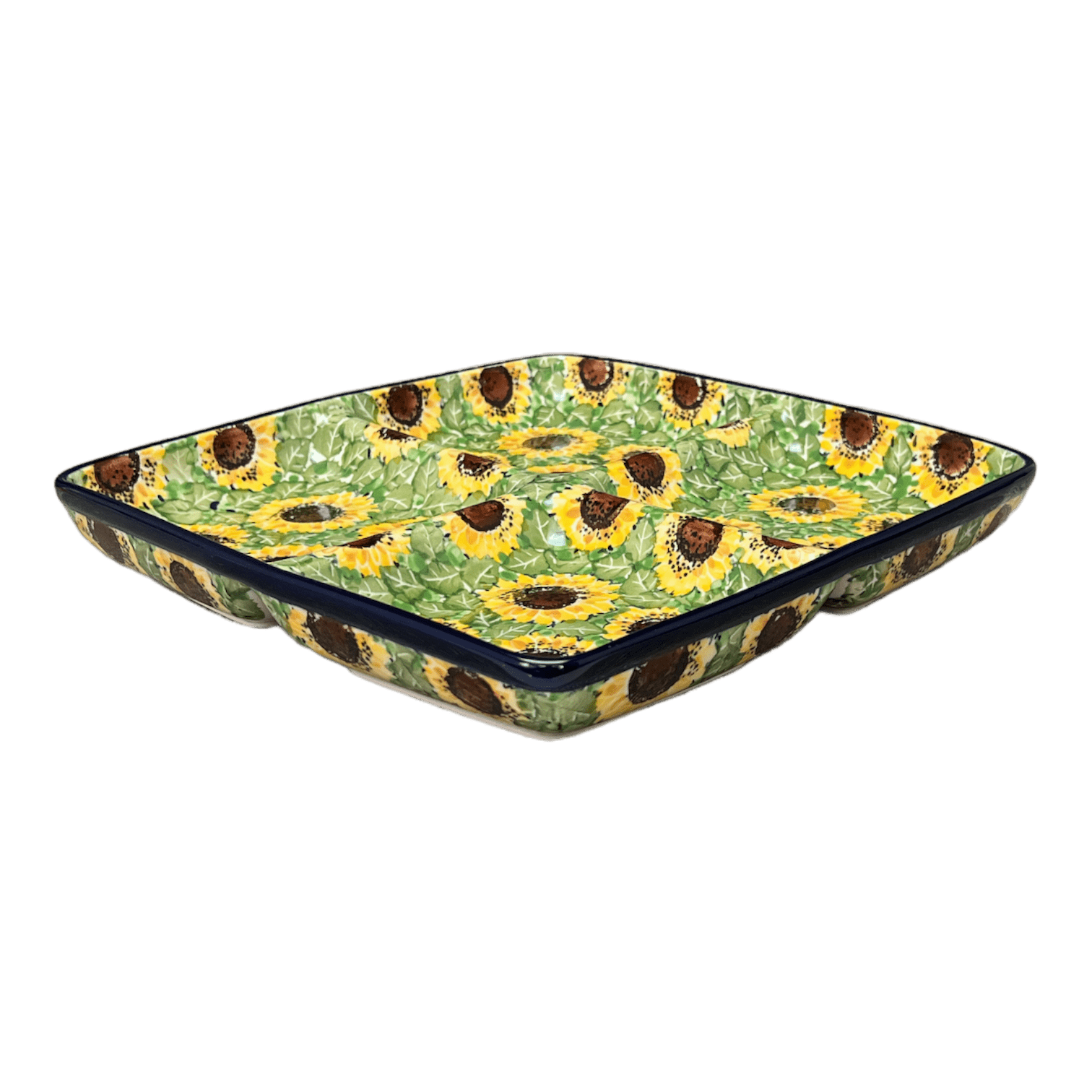Divided Square Dish, 9.75" in "Sunflower Field" by Ceramika Artystyczna | AB40-U4737 is backordered and will ship as soon as it is back in stock.