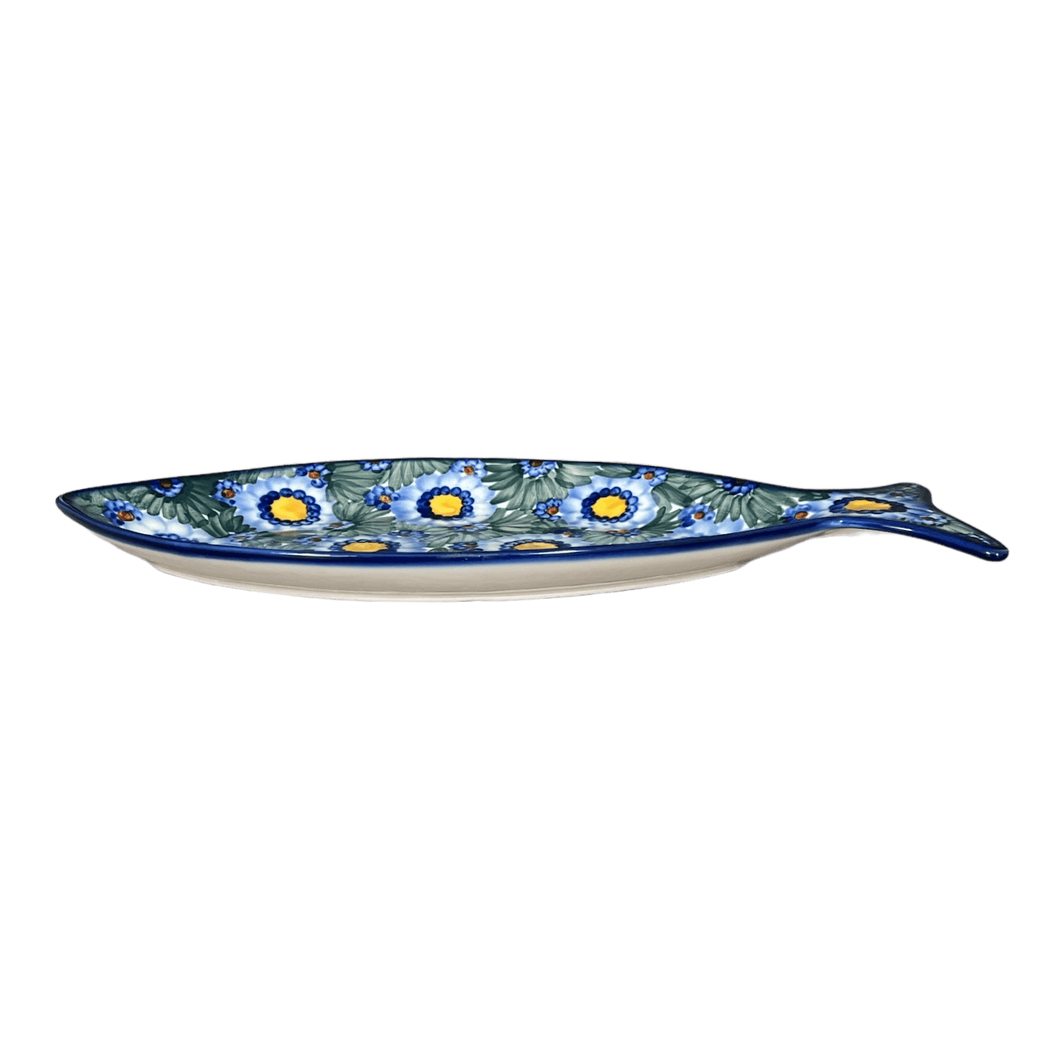 Plate, Fish-Shaped, 14.5" x 6.5", WR (WR13O) in "Impressionist's Dream" by W.R. Ceramika | WR13O-AB3 is backordered and will ship as soon as it is back in stock.