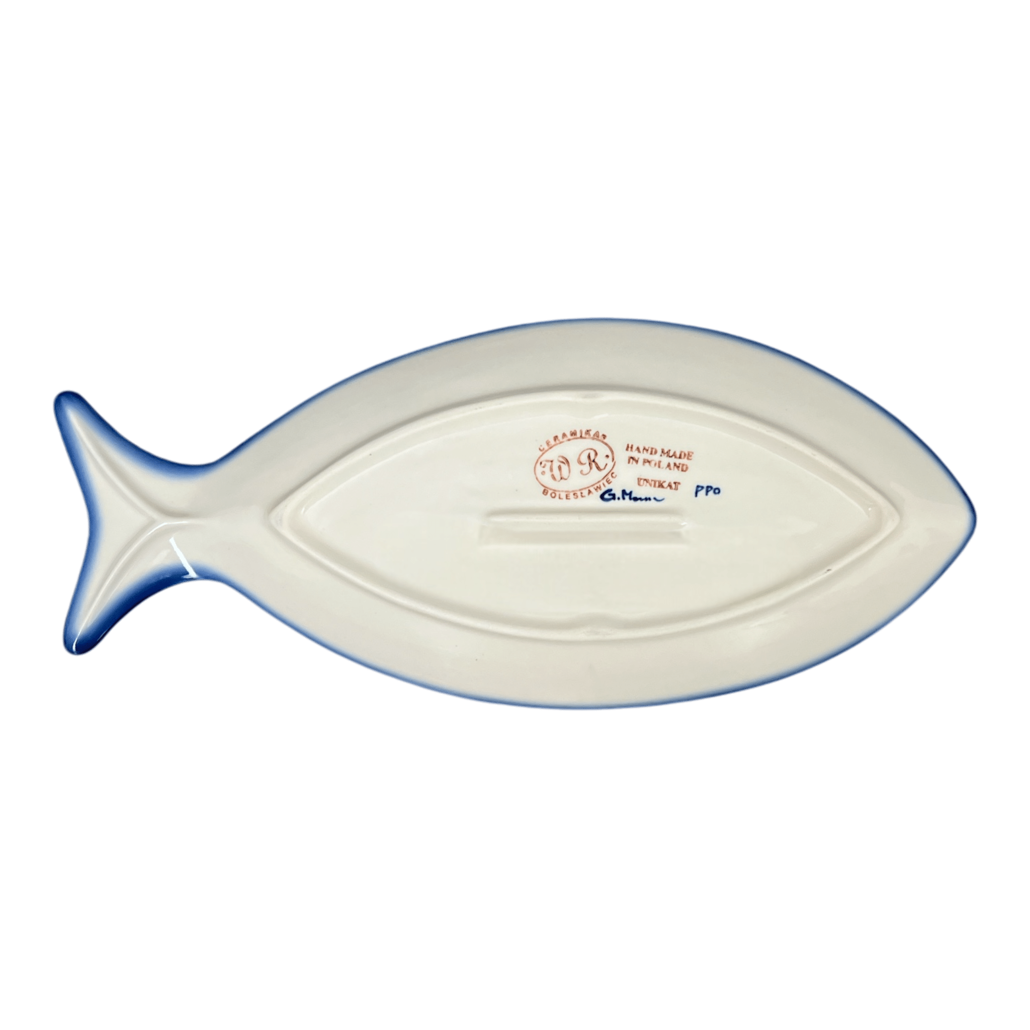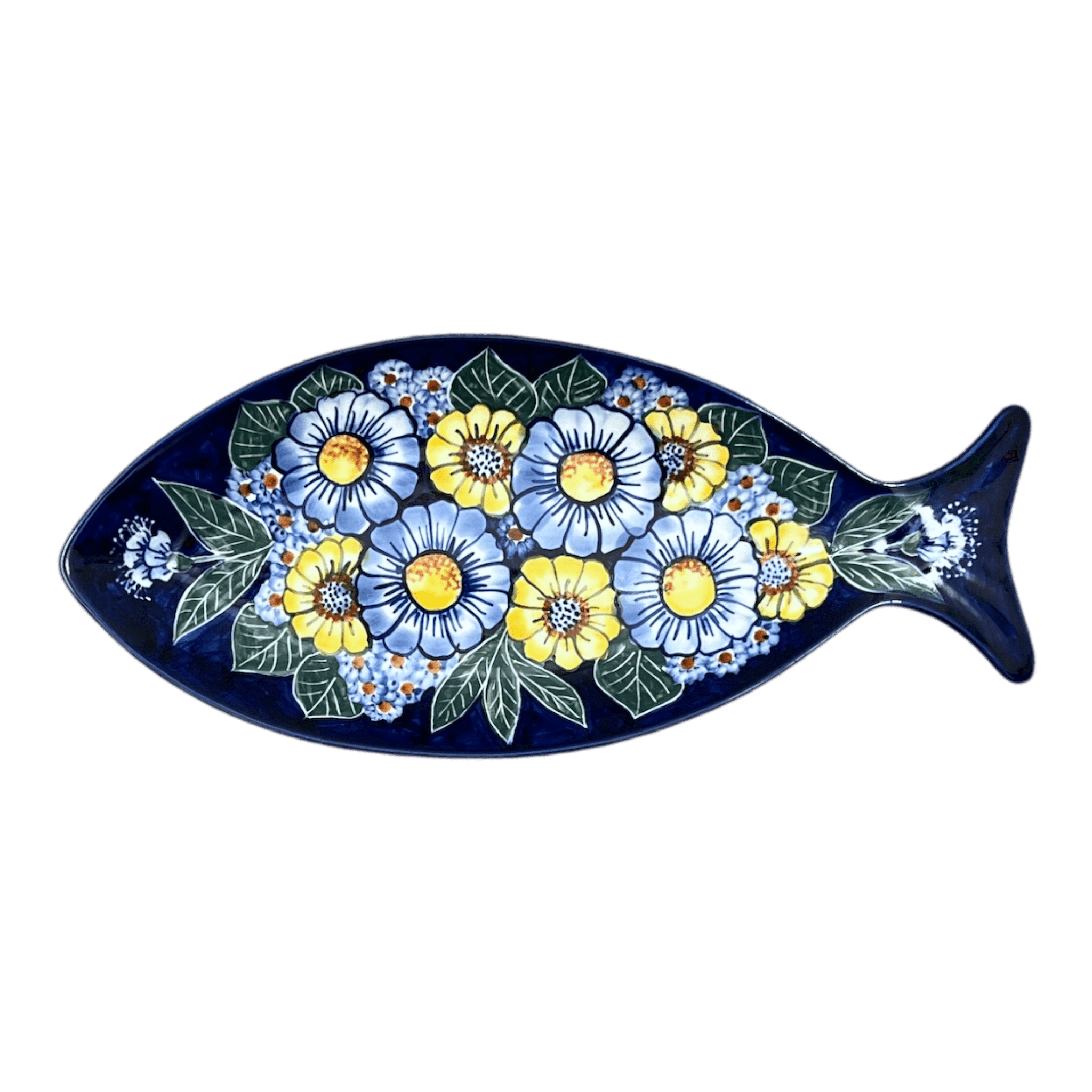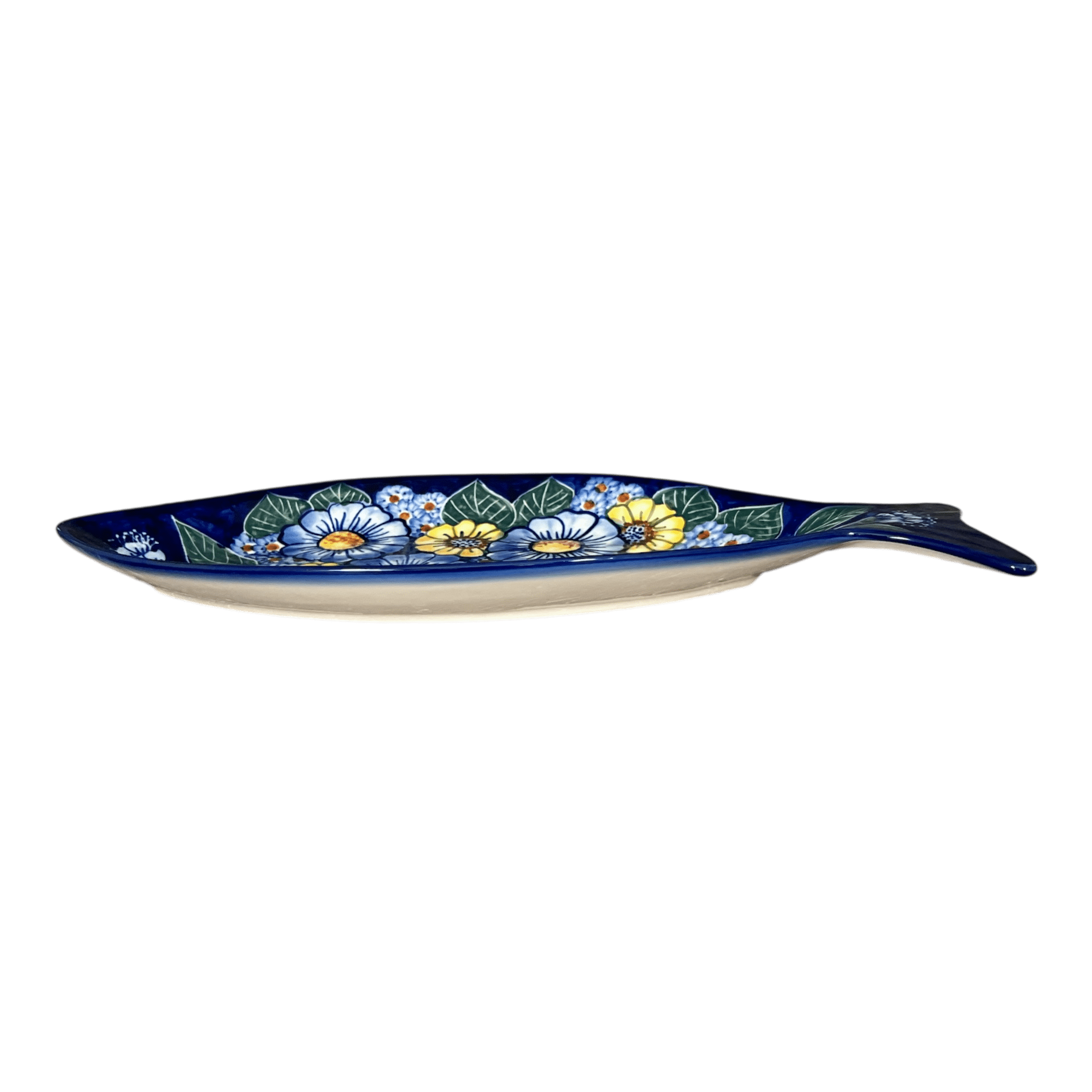 Plate, Fish-Shaped, 14.5" x 6.5", WR (WR13O) in "Cobalt Blossoms" by W.R. Ceramika | WR13O-AB5