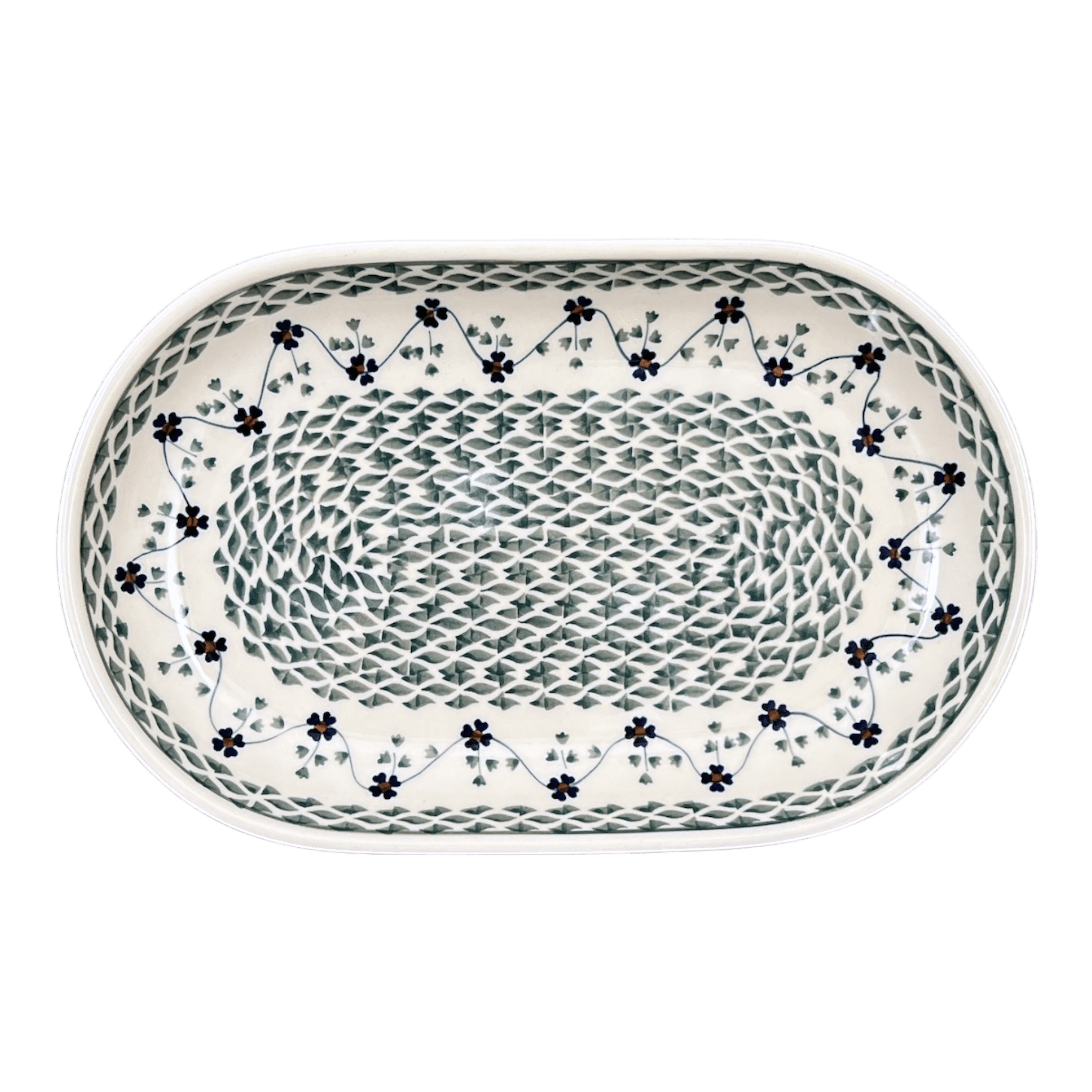 Platter, Oval, 8" x 13" in "Woven Pansies" by Manufaktura | P101T-RV is backordered and will ship as soon as it is back in stock.