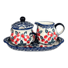 Function meets form in this exquisite Polish Pottery set, crafted in the heart of Boleslawiec by skilled artisans. Renowned for its durability and versatility, this pottery is perfect for daily use or special occasions, safe for use in the dishwasher, microwave, freezer, and even the oven up to 425 degrees. Free from lead, nickel, and cadmium, it offers peace of mind along with its visual appeal. Whether you're hosting a dinner party or enjoying a quiet breakfast, this cream and sugar set will add a splash of color and a dash of old-world charm. Mix and match with other pieces to create a stunning tableau that will leave your guests talking long after they leave.