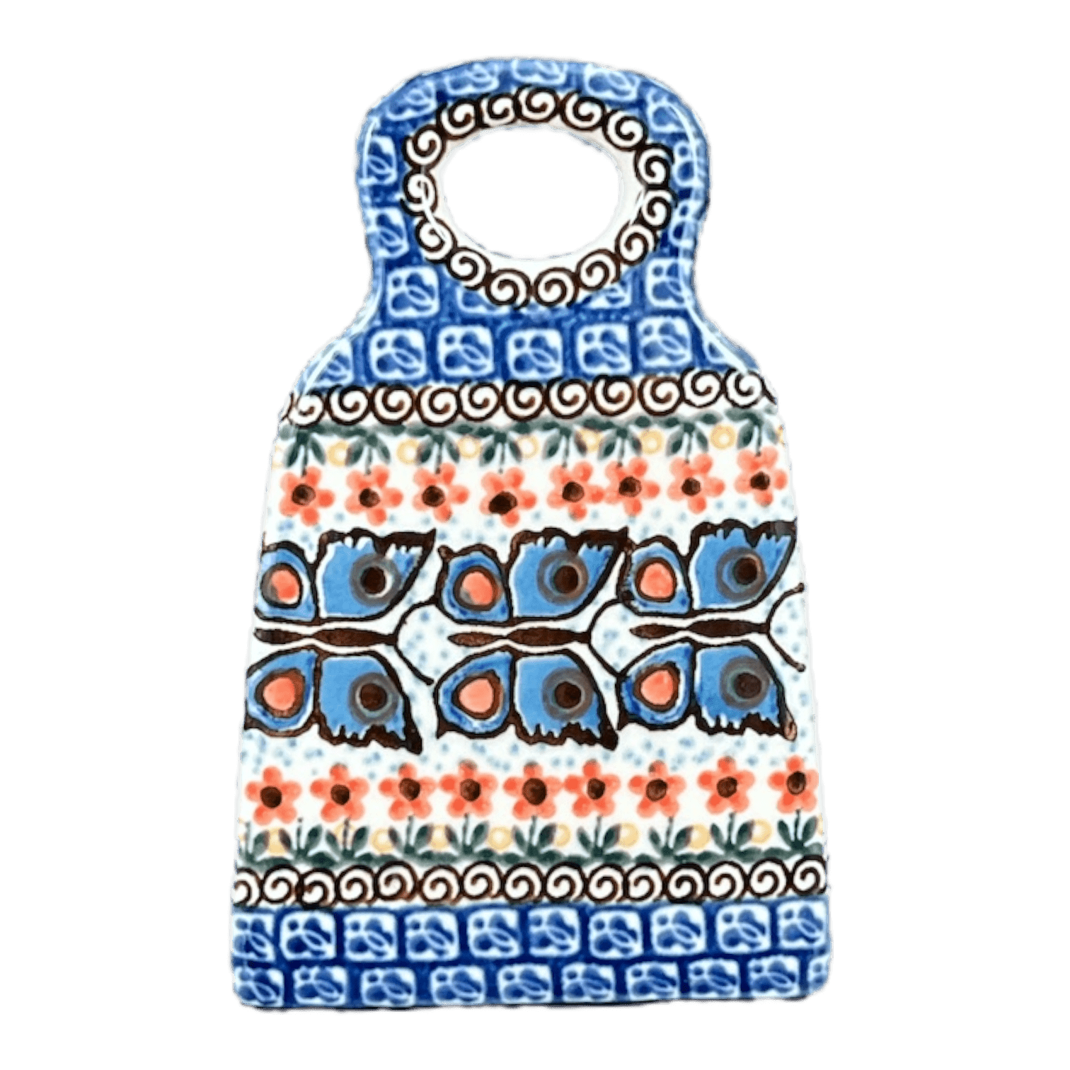 Imagine a kitchen where everyday tools are transformed into works of art. The Polish Pottery Grater, a charming 6-inch utensil, is not just any grater. Crafted by the esteemed artisans of Ceramika Artystyczna in the enchanting "Butterfly Parade" pattern, this piece features an intricate dance of blue butterflies with peach-spotted wings fluttering around lush peach-colored flowers, set against a canvas of vibrant blue and green. This delightful pattern is not only a feast for the eyes but also a testament to the signature artistry that places these creators at the pinnacle of ceramic design.