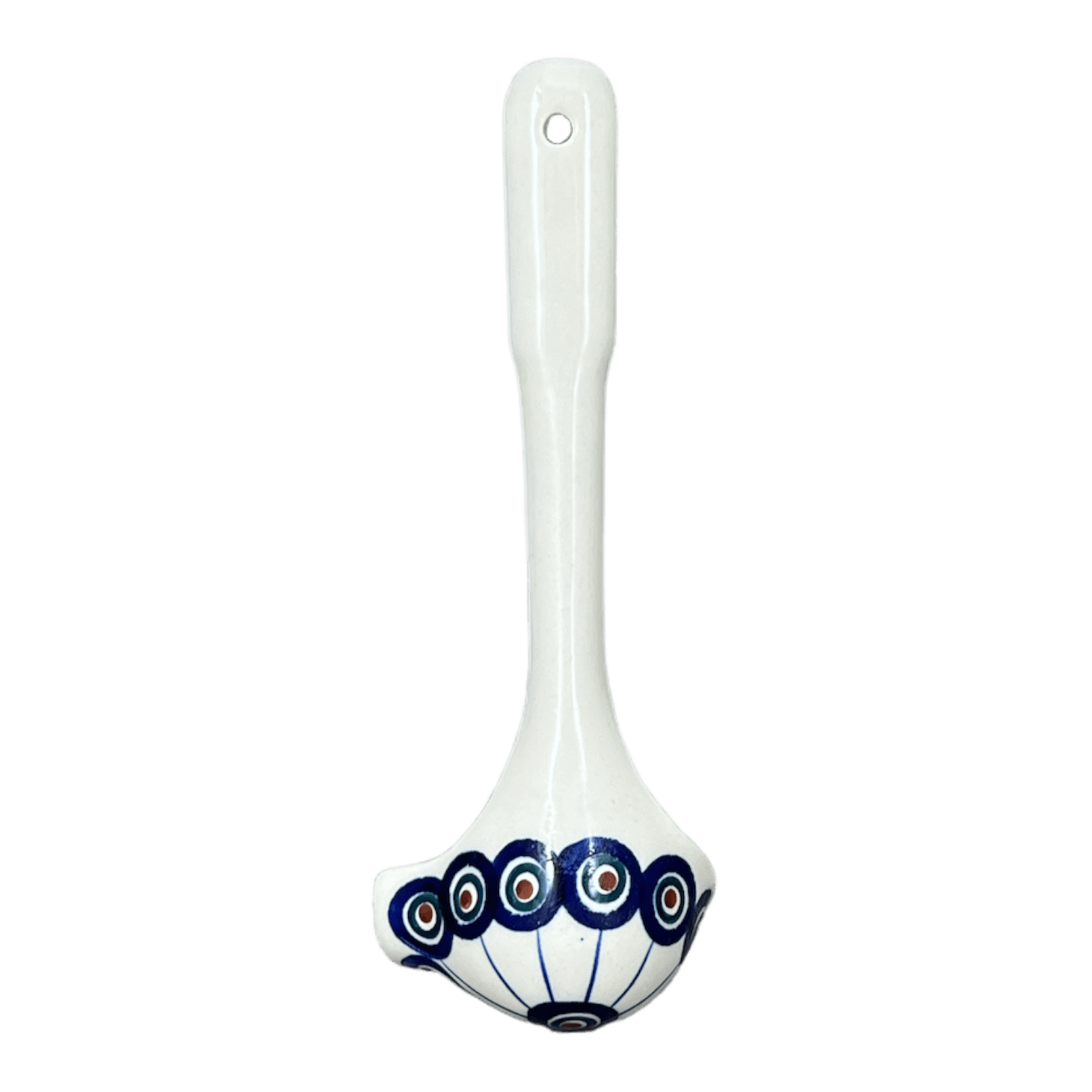 Each ladle is crafted using the time-honored "punching" technique, where highly skilled artisans meticulously hand-stamp each design. This method ensures that no two pieces are exactly alike, giving you a unique artifact that's as individual as your style. The "Peacock in Line" design falls under the Traditional level of artistry, the most recognizable and beloved category in the realm of Polish pottery. These simpler patterns allow for unlimited production, satisfying the high demand and showcasing the vast talents of a larger pool of artists. So, while each piece carries the essence of the pattern, the handcrafted nature means every ladle has its own distinct flair and personality.