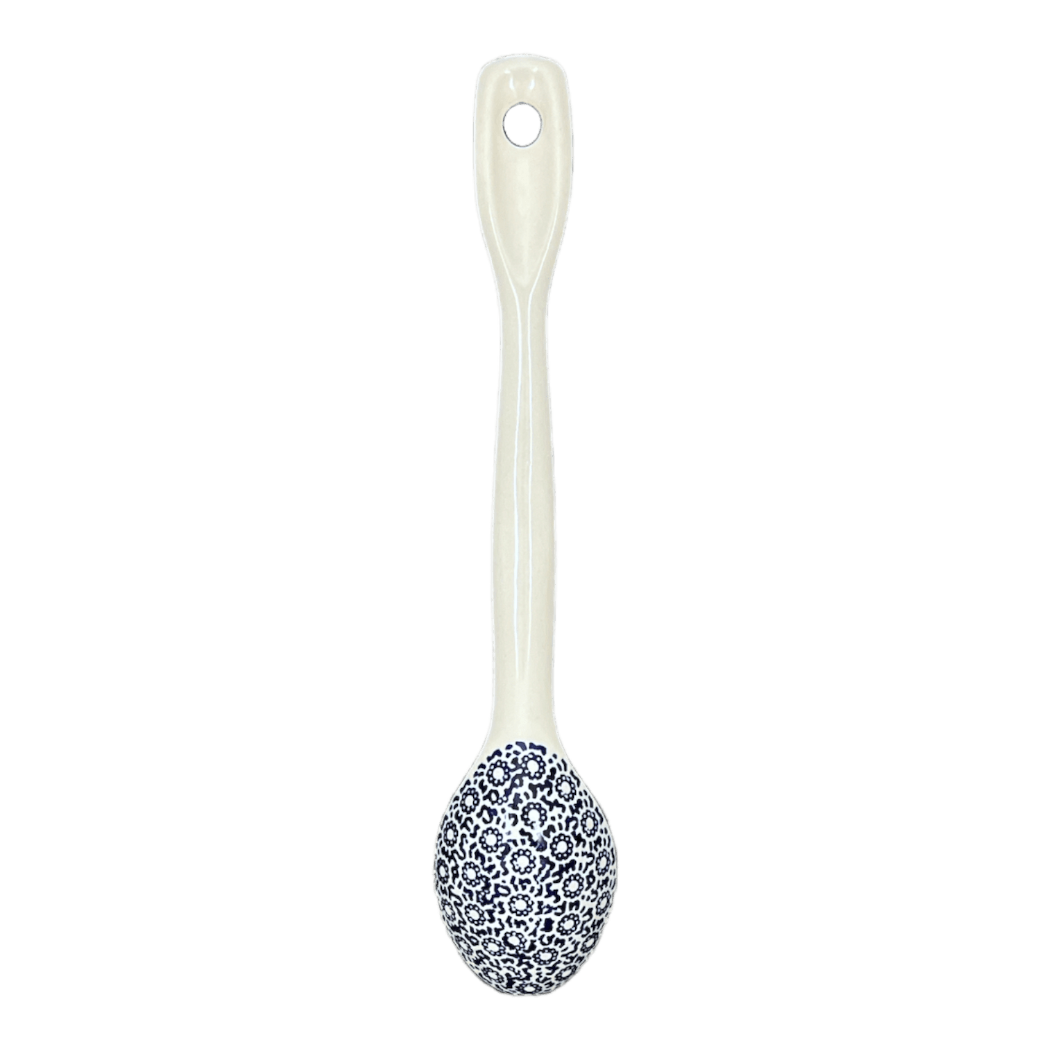 Each spoon is meticulously hand-painted by the skilled artisans of Boleslawiec, Poland, using the "punching" technique—a time-honored method of hand stamping that breathes life into the clay. As you use this spoon, you're not just mixing ingredients; you're mingling with nature and centuries of craftsmanship. What's more, the variations in the pattern from one spoon to another mean that each piece is uniquely yours. No two are exactly alike! Functional, beautiful, and durable, this Polish pottery spoon withstands the rigors of daily use and is safe for the dishwasher, microwave, and even the oven up to 425 degrees.