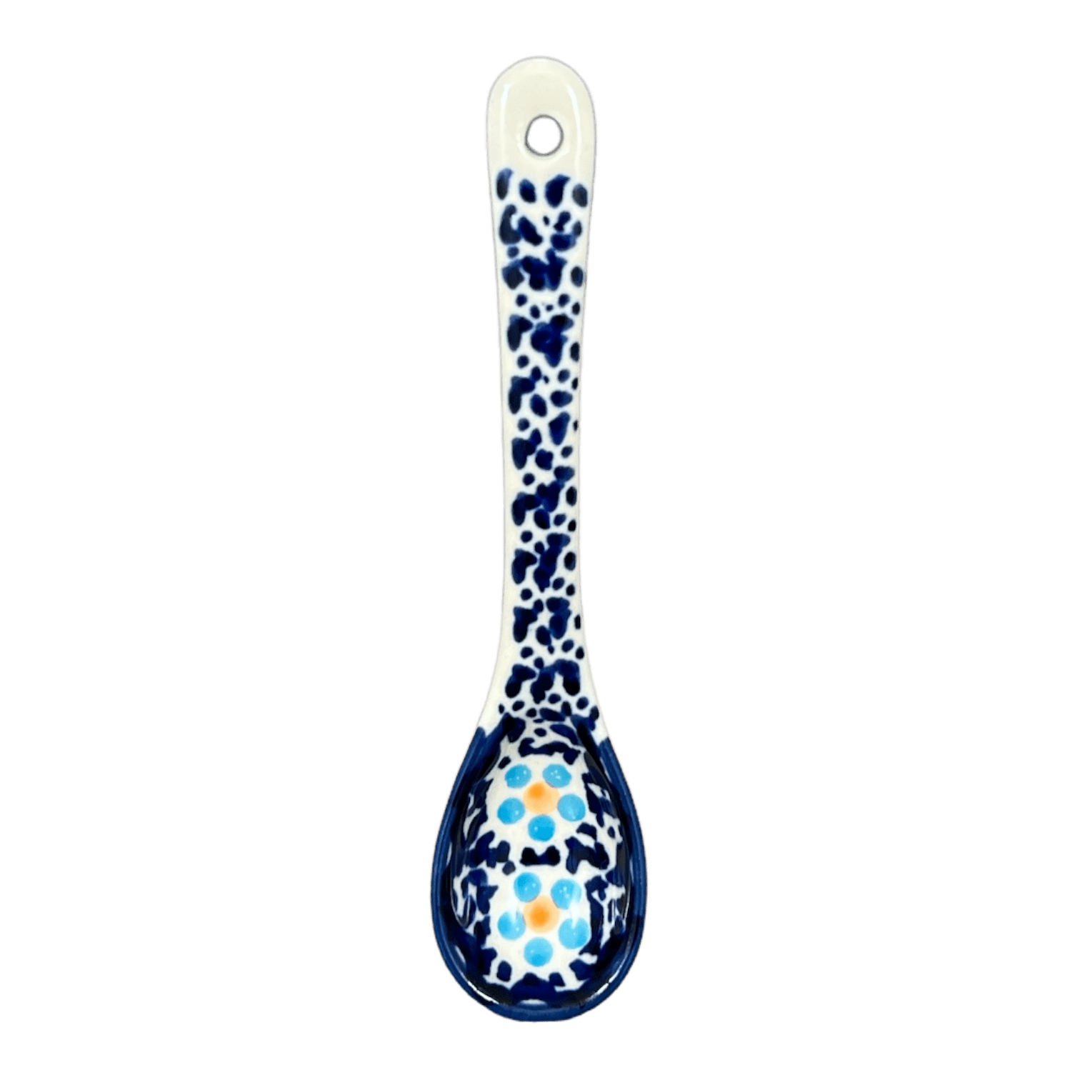 Not only is this Polish Pottery Spoon a feast for the eyes, but it's also built to last. Made from high-quality materials, it is tough, durable, and chip-resistant, ensuring that it can withstand daily use while maintaining its lovely appearance. Safe for use in the dishwasher, microwave, freezer, and oven (up to 425 degrees), this spoon is as practical as it is pretty. Whether you're stirring sugar into your tea or displaying it as part of your kitchen decor, this spoon from Manufaktura, a trailblazer in Boleslawiec pottery since 1992, is guaranteed to impress. Add a touch of Polish tradition and modern artistry to your home with this beautiful, functional piece.