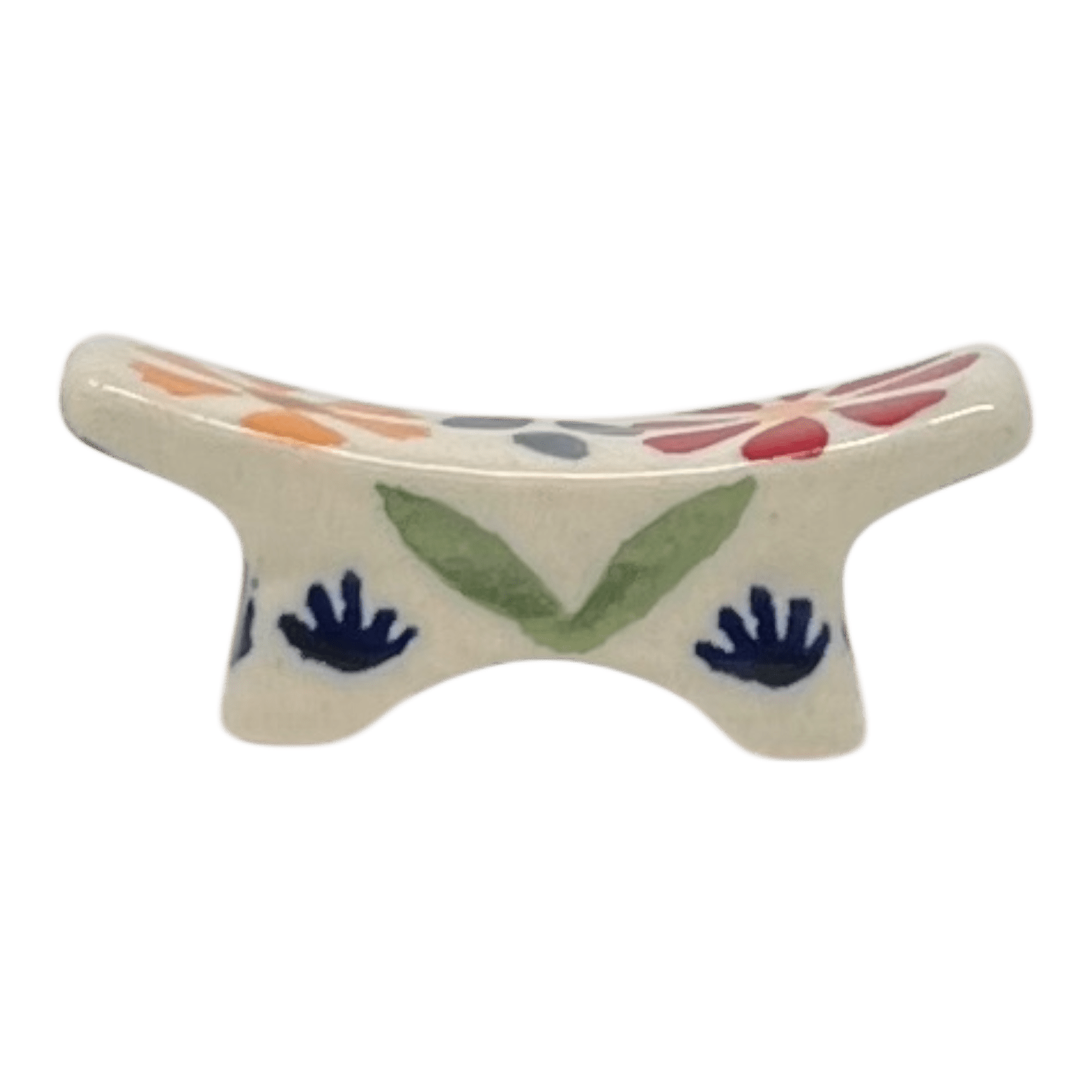 Imagine a tiny piece of art that not only keeps your chopsticks neatly in place but also brings a burst of joy and color to your dining experience! Enter the Polish Pottery Chopstick Rest from Manufaktura, sized at a cute 2" x 0.5". Crafted in the vibrant "Flower Power" pattern, this rest features a lively dance of red and orange flowers swirling amidst blue and white accents, all set against a pristine white background. It's not just a utensil rest—it's a conversation starter, designed to add a touch of elegance and whimsy to your table setting.