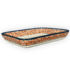 Imagine pulling a freshly baked lasagna out of the oven, the aroma filling your kitchen, as you unveil it in a stunning Polish Pottery Baker by Zaklady. This isn't just any baking dish; it's a canvas of rich, warm colors and intricate designs. The "Orange Wreath" pattern, a mesmerizing blend of flowers predominantly in brown, with lively accents of orange, green, and white, encircles the dish. Each piece, sized perfectly at 9" x 11.75", is not only a functional kitchen essential but also a piece of art, decorated with a ring of brown, orange, and gold flowers cradling lush green leaves, and a charming center of white speckled with tiny brown dots.