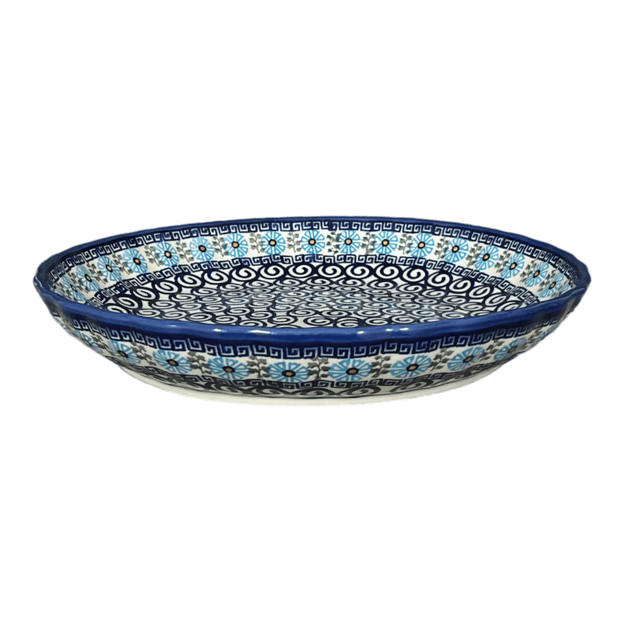 What sets this piece apart is the passionate craftsmanship of Andy, a small, family-owned factory renowned for adding contemporary twists to classic Polish designs. This particular pattern, the "Blue Daisy Spiral," is a beloved choice among military families who have fallen in love with Polish pottery during their overseas postings. Each purchase not only enhances your home decor but also supports the rich cultural heritage and continued innovation of Boleslawiec's artisan community. Mix and match with other pieces to create a stunning ensemble that promises to captivate and charm your guests, making every gathering a memorable one.
