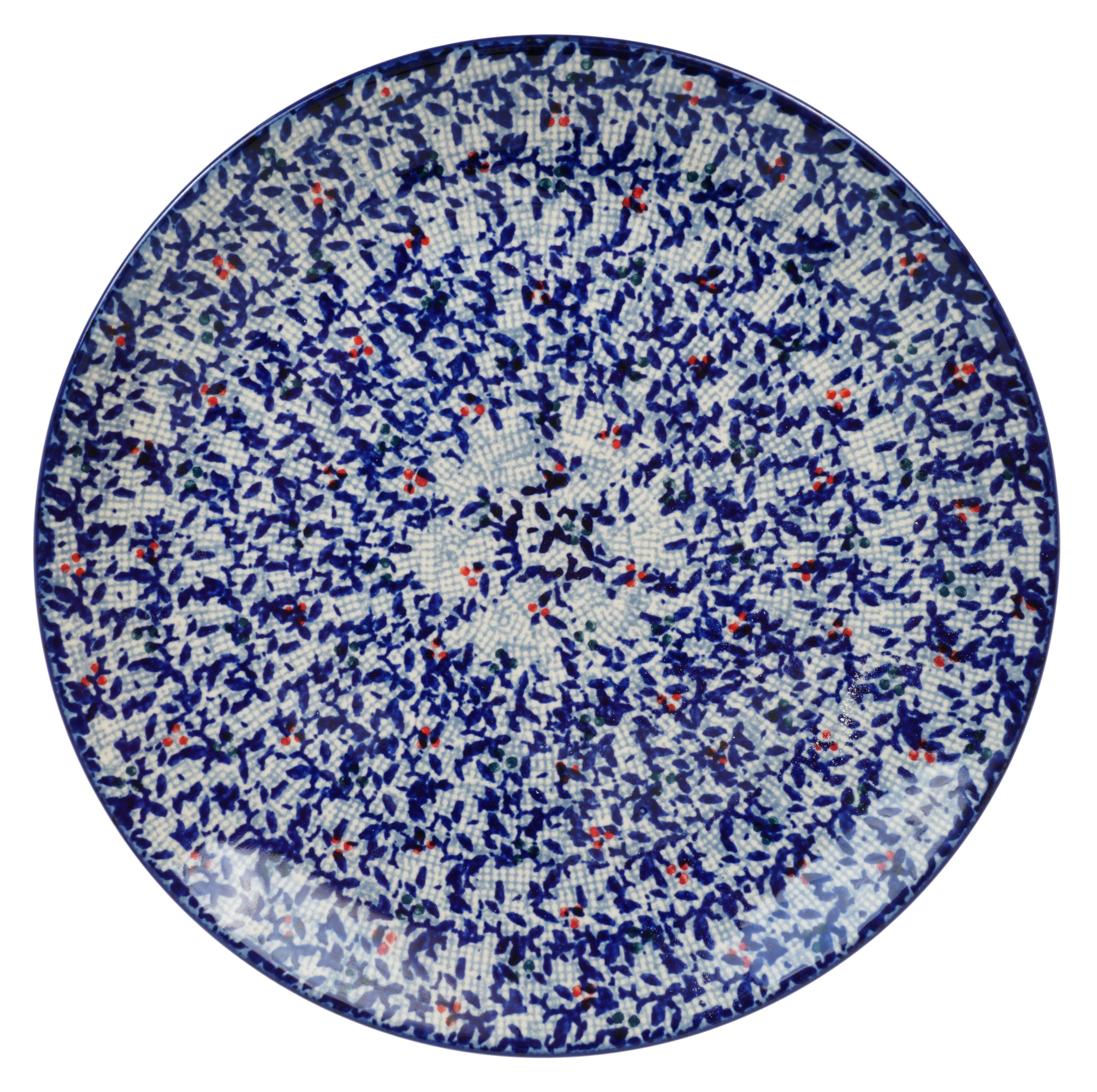The "Twilight Berries" pattern is a work of art, featuring intricate design elements incorporating leaves and berries in a predominantly blue color with accents in red. The light blue background is covered with tiny blue leaves, while sets of three tiny red dots are lightly scattered throughout the pattern. This Unikat level pattern is truly unique and showcases the skill and artistry of the painter.