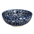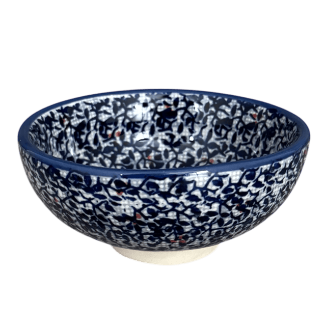 Immerse yourself in the enchanting world of Polish pottery with the exquisite Manufaktura Dipping Bowl in the "Twilight Berries" pattern. This charming piece is not just a bowl, but a canvas painted with a mesmerizing design of delicate blue leaves and whimsical red berries set against a serene light blue backdrop. Each 4.25-inch round bowl is a testament to the unique artistry of Unikat patterns—meaning "Unique" in Polish—which showcases a higher level of detail and a richer palette of colors. Crafted in the historic town of Boleslawiec, Poland, this bowl carries the prestigious UNIKAT stamp, signifying its authenticity and limited production by only the most skilled artisans.
