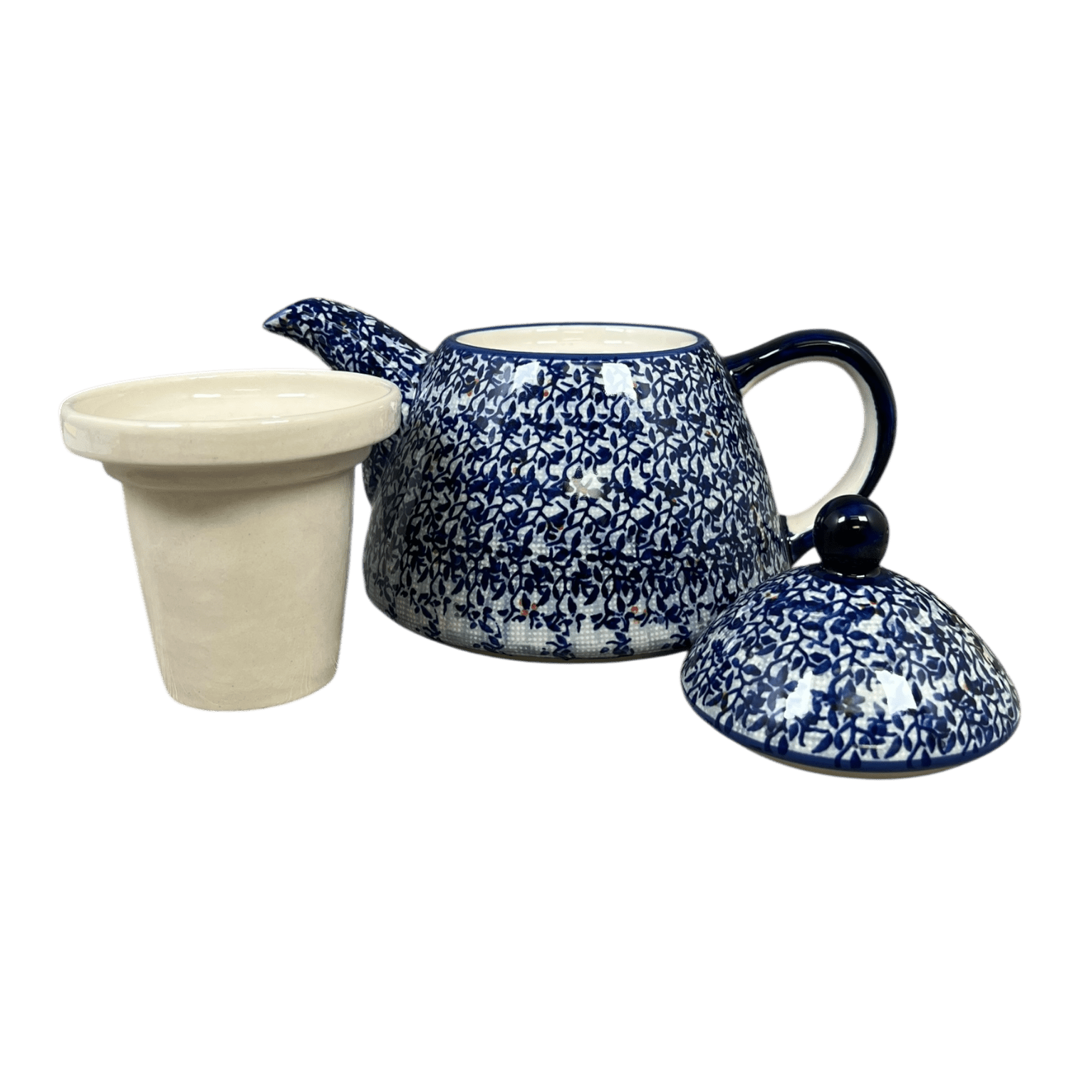 Imagine the enchantment of a twilight garden, where the dusk settles gently on berries and leaves, all captured on a teapot! This is exactly what the "Twilight Berries" pattern offers on the exquisite Polish Pottery Tea Infuser Teapot from Manufaktura. Hand-painted with delicate blue leaves and whimsical red berries scattered across a serene light blue background, this teapot isn't just a kitchen utensil; it's a piece of art. Brew your favorite loose-leaf tea with the included infuser, and let each sip transport you to a twilight realm of flavor and tranquility.