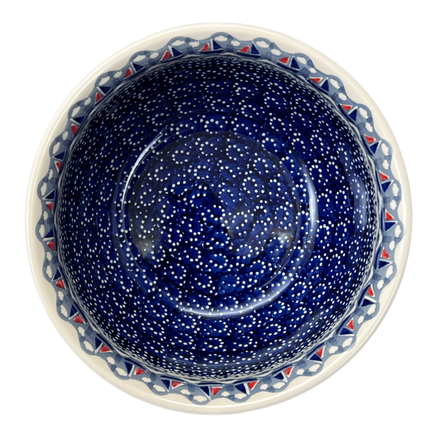 Not only is this bowl visually stunning, but it's also highly functional. With a capacity of 44 oz. (that's 5.5 cups), it's perfect for serving generous portions. Crafted and hand-painted in Boleslawiec, Poland by skilled artisans, this Polish Pottery bowl is a testament to their craftsmanship. And the best part? It's not just a decorative piece - it's built to withstand the demands of everyday use. Made from high-quality materials, it's tough, durable, and chip-resistant. Plus, it's free of lead, nickel, and cadmium, ensuring your family's safety.