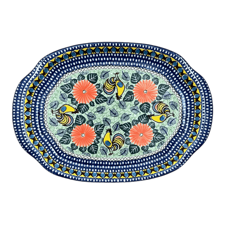 Tray, Oval, Handles, 10.75" x 15.25" in "Regal Roosters" by Ceramika Artystyczna | A684-U2617