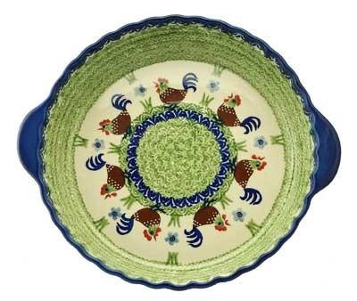 Baker, Round, Pie Plate, Handles, 9.75" in "Chicken Dance" by Manufaktura | Z148U-P320