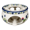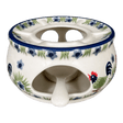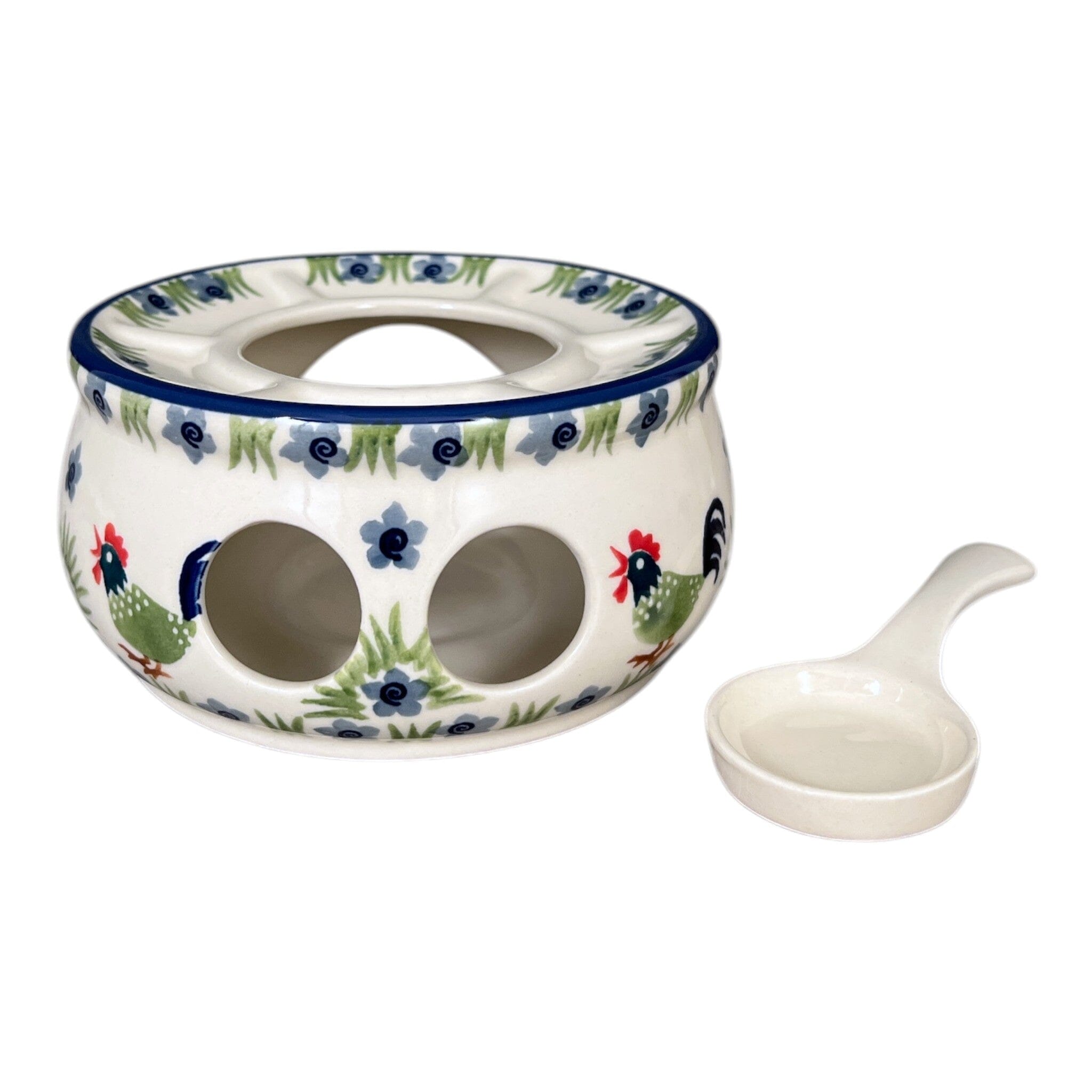 This isn't just any pottery; it's a versatile treasure trove for the creative host or hostess. Whether you're keeping your tea at the perfect sipping temperature, warming up rich sauces, or serving hot dips and hors d'oeuvres, this warmer does it all with a flair that only Polish Pottery can offer. Crafted to support a range of accessories from teapots to small bean pots, it's the perfect companion for any culinary creation. And let's not forget the design – the "Rise & Shine" pattern features a delightful mix of pastoral blues, greens, and reds, with playful chickens and serene floral touches that bring a rustic yet refined style to any décor.