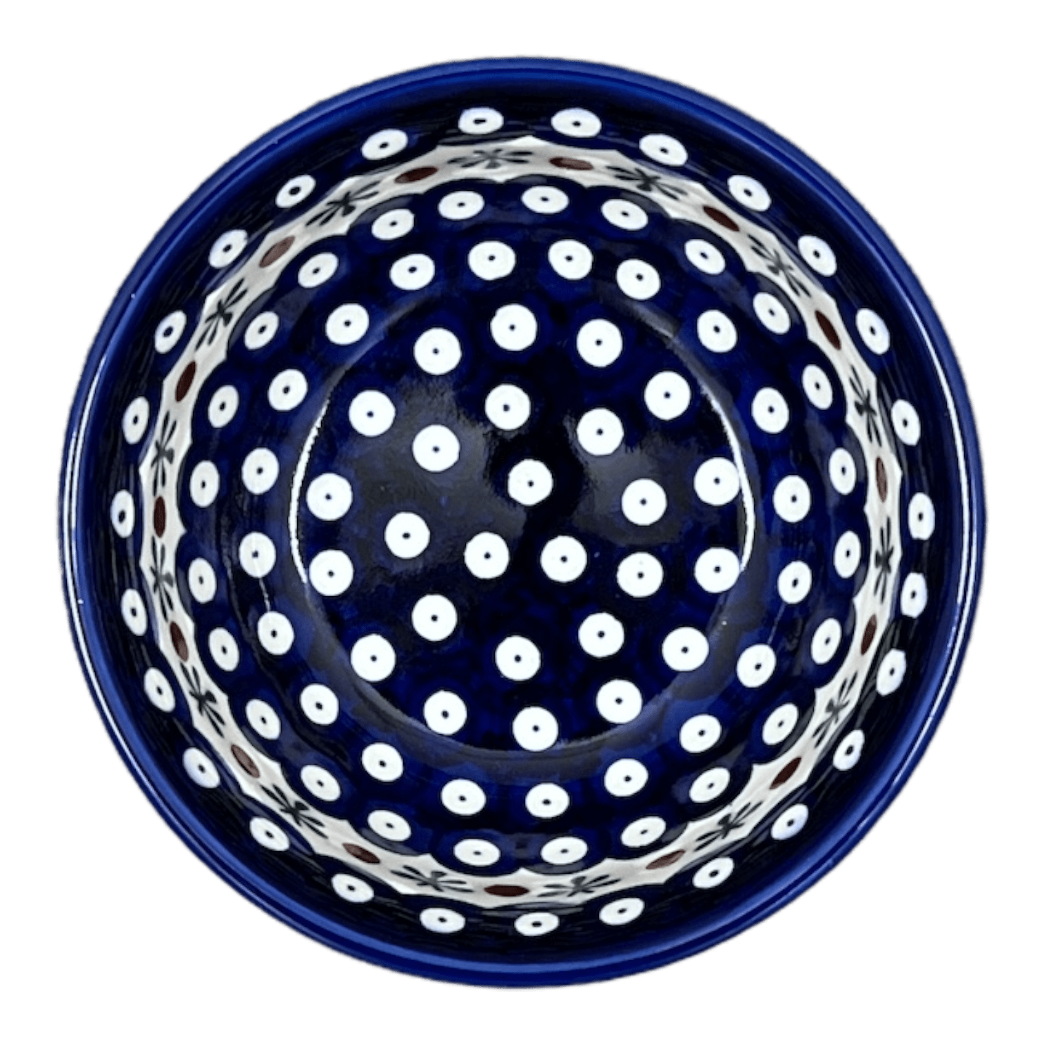 Imagine starting your day with a burst of artistic flair with the Polish Pottery Bowl from W.R. Ceramika. Not just any bowl, this delightful piece brings the vibrant "Mosquito" pattern to your table, featuring playful white polka dots set against a rich cobalt blue backdrop. Accented with a charming white band dotted with brown and whimsical green "mosquitoes," this design is not only a feast for the eyes but also steeped in tradition. Each 6-inch bowl is a canvas where nature meets artistry, crafted by the hands of skilled artisans using the time-honored "punching" technique of hand stamping, ensuring that no two pieces are exactly alike.