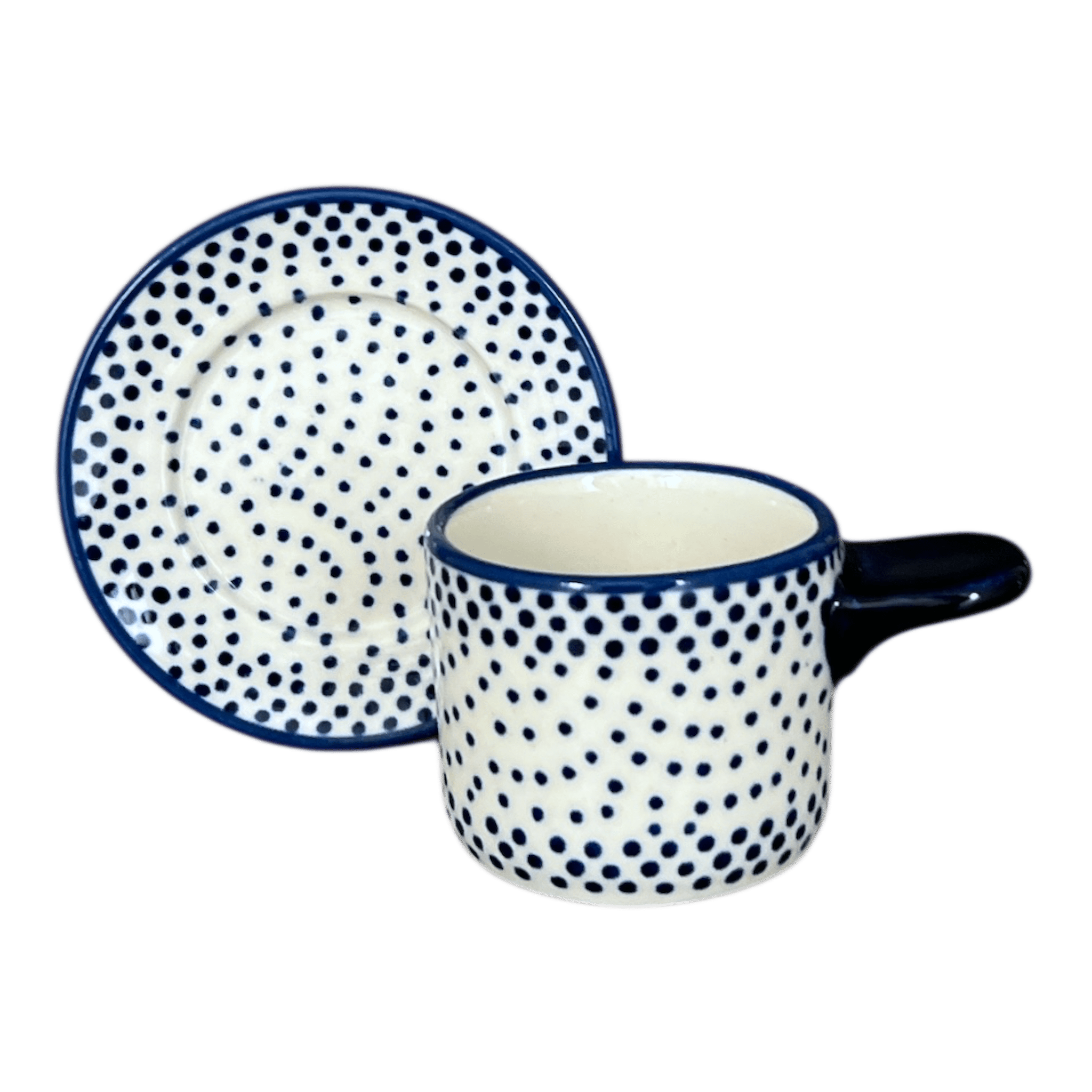 Imagine starting your day or wrapping up a cozy dinner with a shot of rich espresso, served in a piece that's not just a cup, but a small work of art. Enter the Manufaktura Polish Pottery Espresso Cup with Saucer, a delightful 2 oz creation in the enchanting "Misty Blue" pattern. This charming set is not only perfect for your favorite espresso but also adds a touch of elegance to your table setting. Each cup, paired meticulously with its saucer, showcases tiny blue dots sprinkled across a crisp white background, embodying a serene yet playful ambiance that can only enhance your espresso experience.