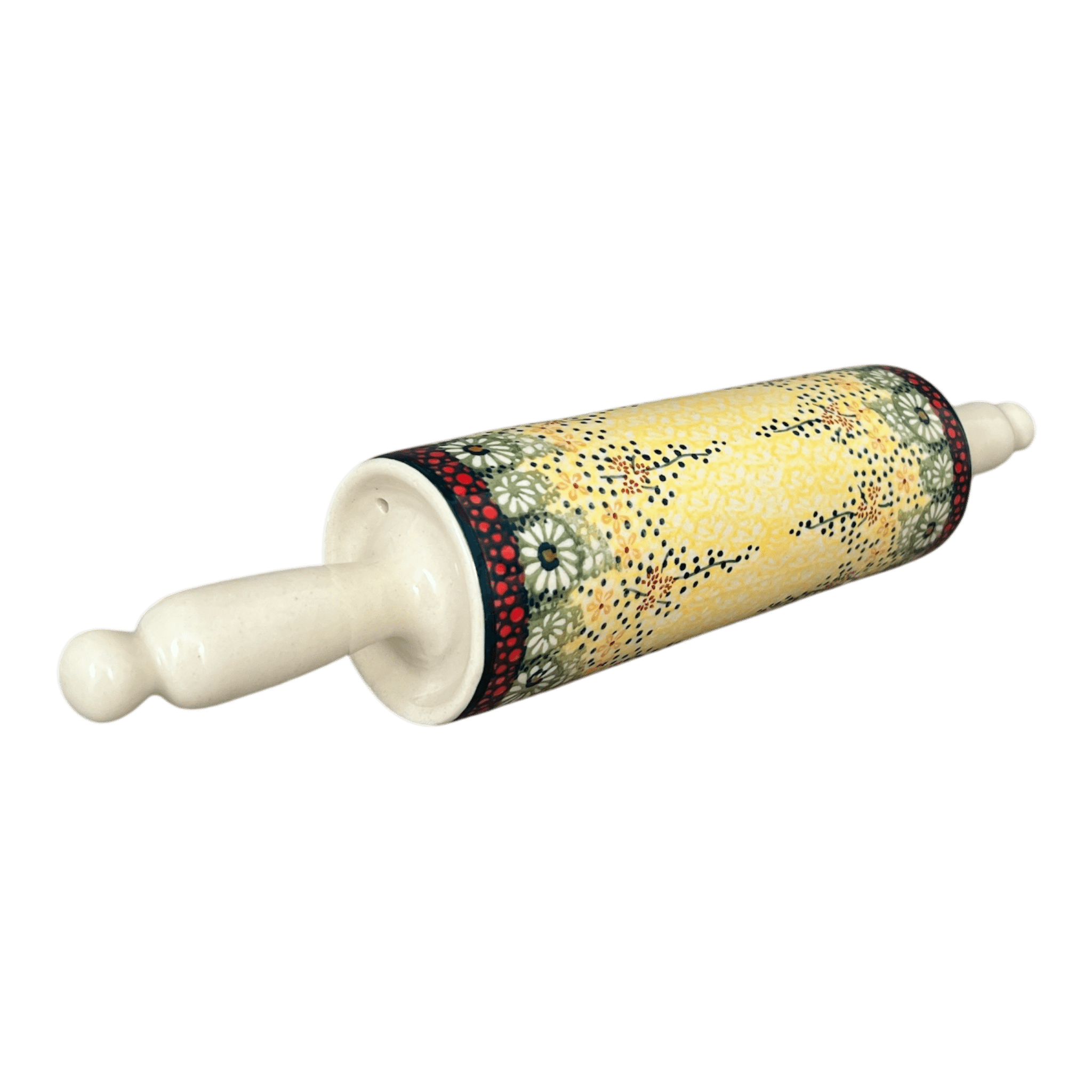 Imagine a kitchen where every tool not only serves its purpose but also tells a vibrant story—welcome to the world of the Polish Pottery Rolling Pin! Crafted by the artisans of Manufaktura in the heartwarming "Sunshine Grotto" pattern, this rolling pin is a masterpiece that combines functionality with exquisite design. Its lively pattern of yellow, green, and red, featuring delicate flowers and playful dots, makes it a joyful addition to any baker's collection. Not just a pretty face, this rolling pin boasts a clever trick; chill it in the fridge or freezer before use, and voila! Its surface becomes non-stick, handling dough like a dream.
