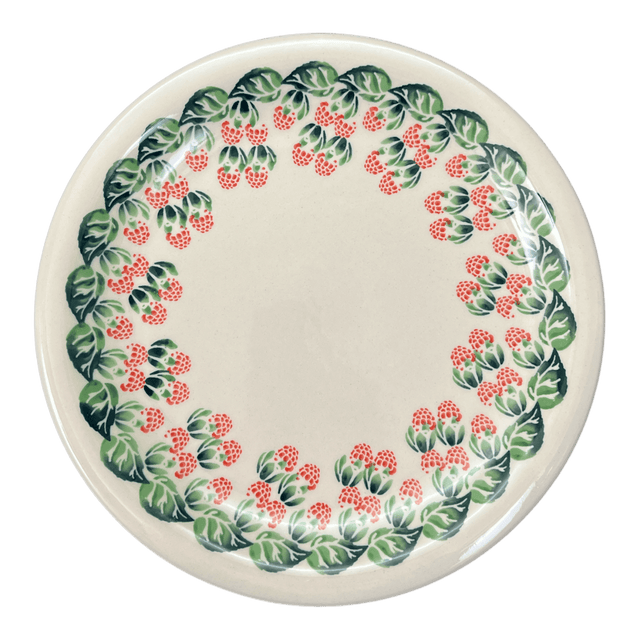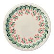 Introducing the exquisite Polish Pottery Round Dinner Plate, a true masterpiece crafted by the skilled artisans of Boleslawiec, Poland. This plate is not just a dining essential, it is a work of art that will add a touch of elegance and color to your home. And with its vibrant "Raspberry Delight" pattern, featuring a delightful fusion of fruits and flowers in lush green hues with striking red accents, it is sure to be a showstopper at your dinner table.