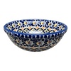 What sets this bowl apart is its mesmerizing "Kaleidoscope" pattern. Designed with geometric elements in a predominantly blue color, it also features accents in brown and yellow, creating a visual feast for the eyes. Each piece is meticulously hand-painted by skilled artisans in Boleslawiec, Poland, ensuring that you are getting a truly unique and authentic piece of Polish pottery.