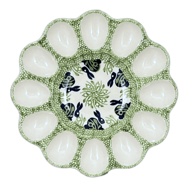 The 10.25" Polish Pottery Egg Plate holds 12 deviled eggs. It's a beautiful way to serve your egg hors d'oeuvres. Also perfect for chocolate covered strawberries!