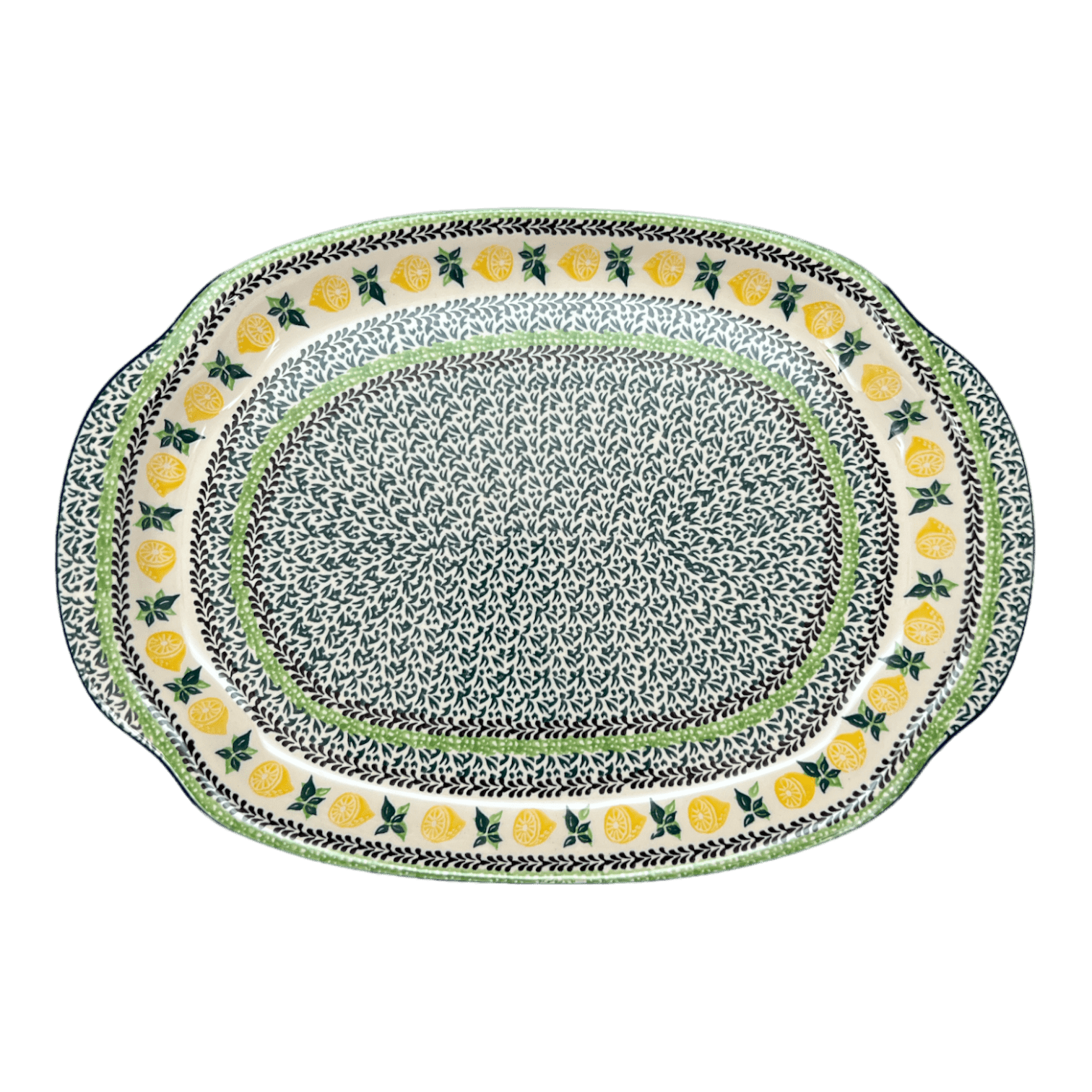Tray, Oval, Handles, 10.75" x 15.25" in "Lemons and Leaves" by Ceramika Artystyczna | A684-2749X is backordered and will ship as soon as it is back in stock.