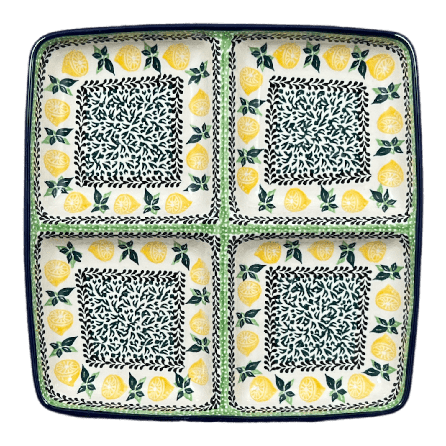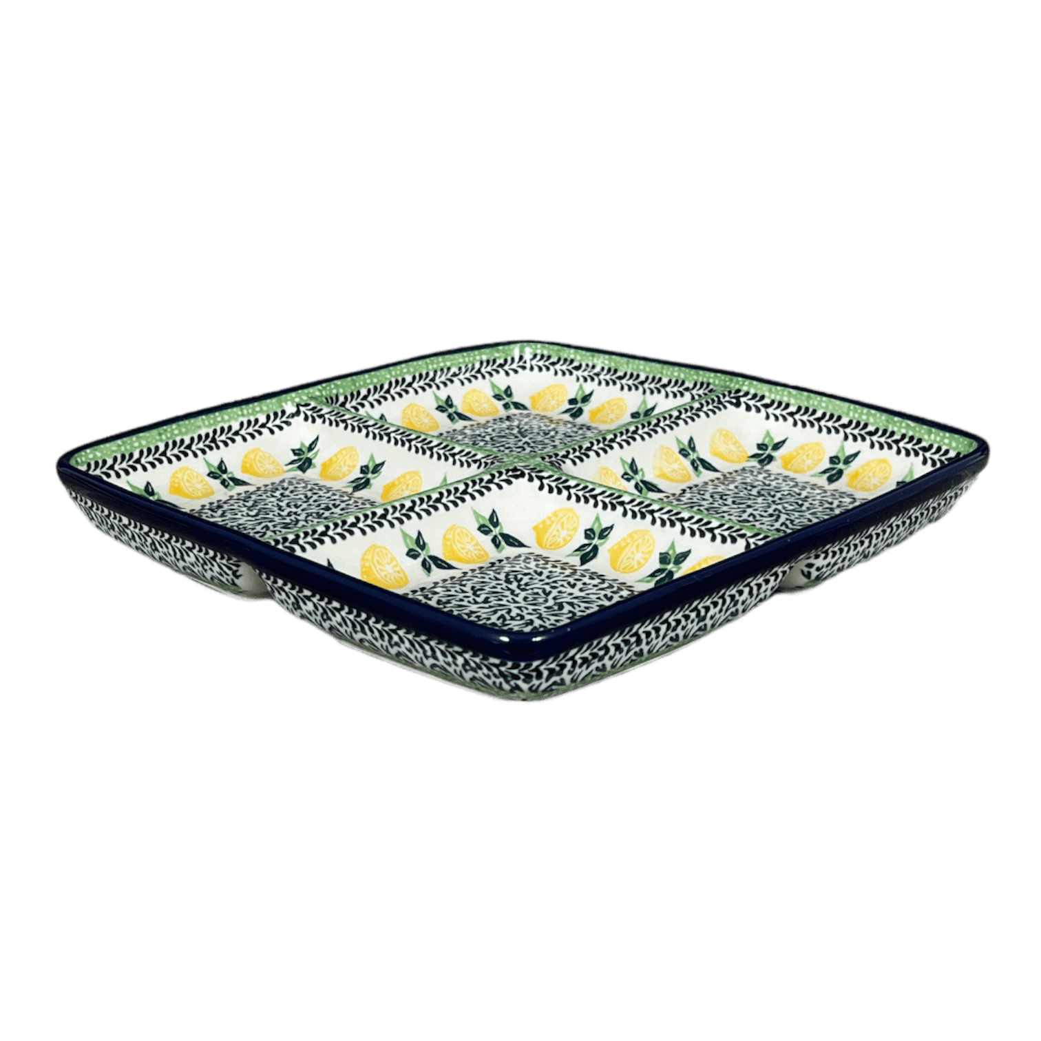 Divided Square Dish, 9.75" in "Lemons and Leaves" by Ceramika Artystyczna | AB40-2749X is backordered and will ship as soon as it is back in stock.